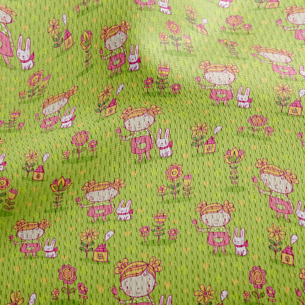 Little Girl And Rabbit Athletic Mesh Flat Back