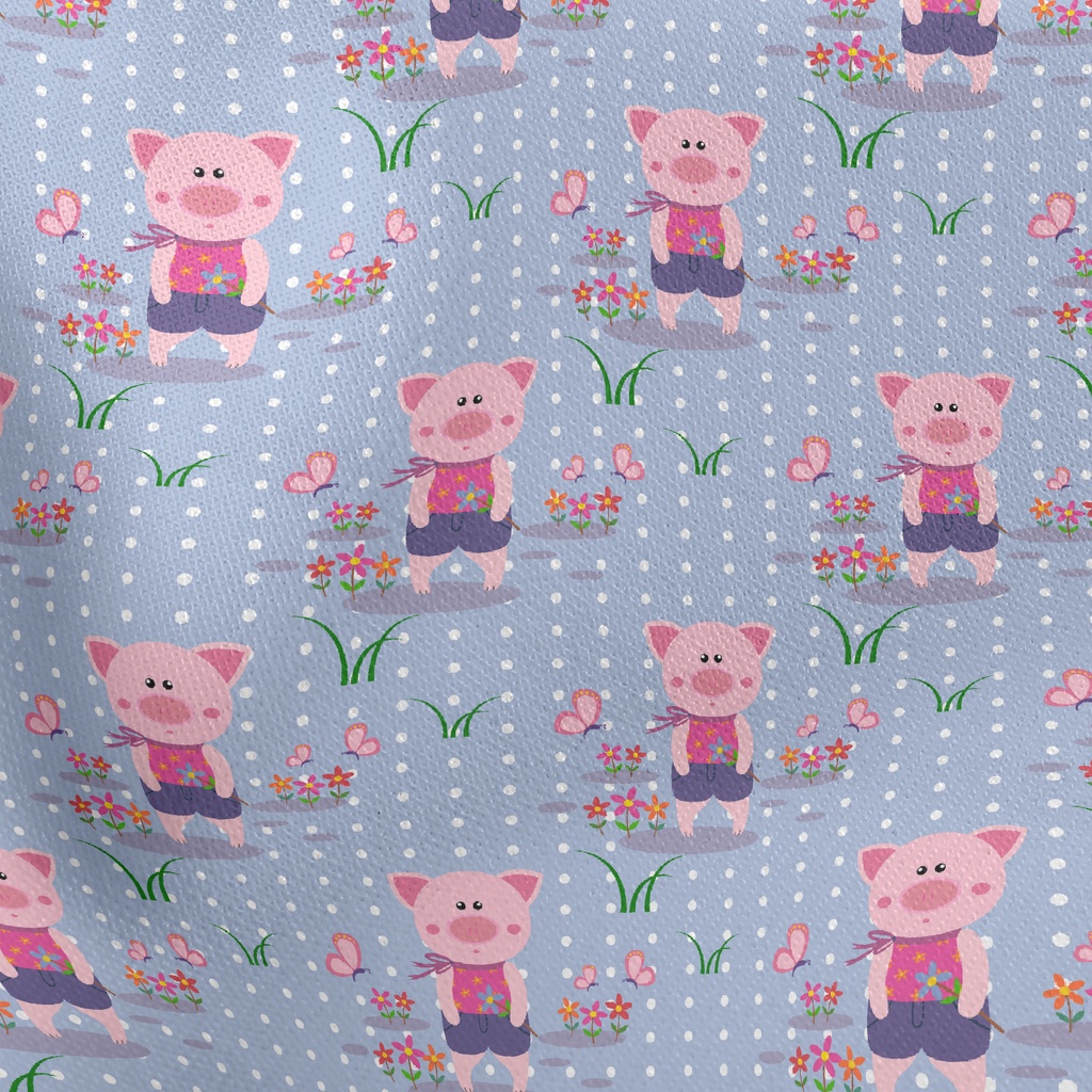 Pig Holding Flowers And Butter Stretch Ponte