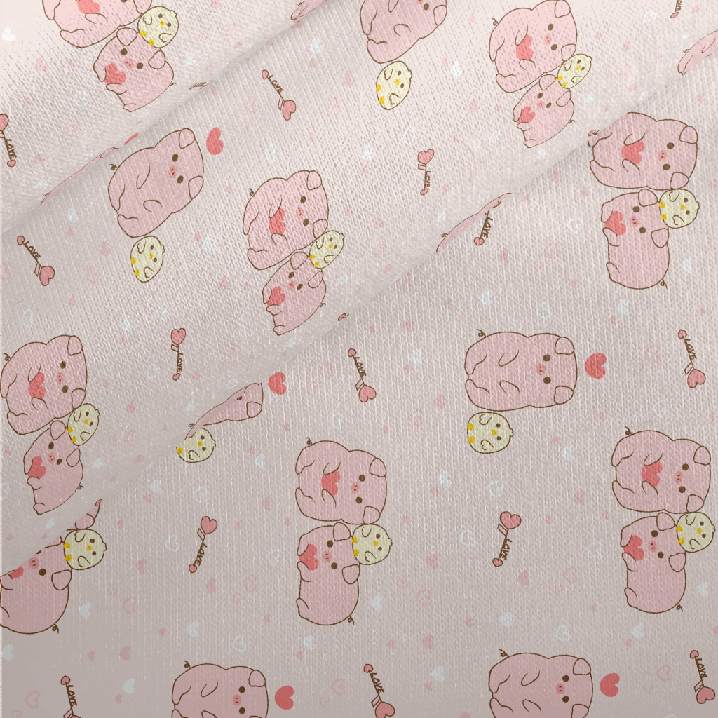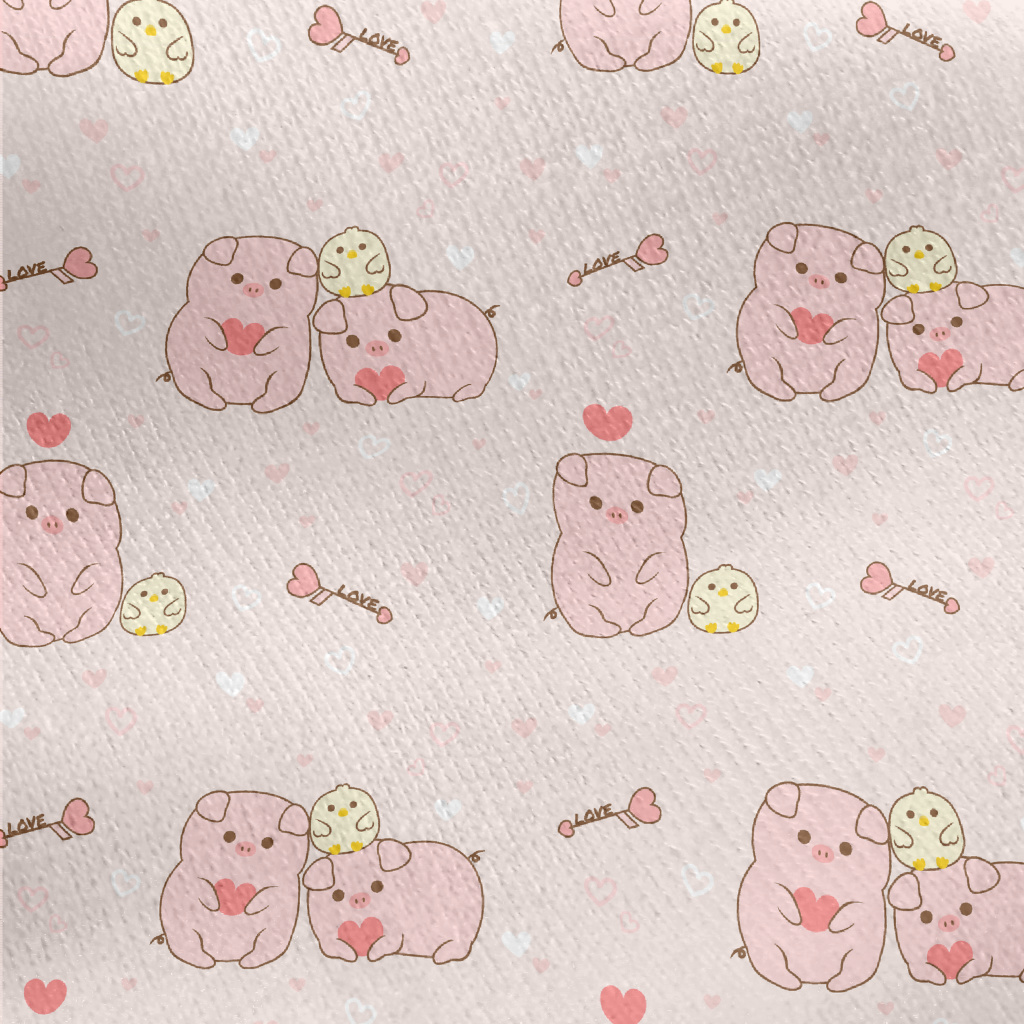 Pig And Chick Love Each Other Jersey Backed Fleece