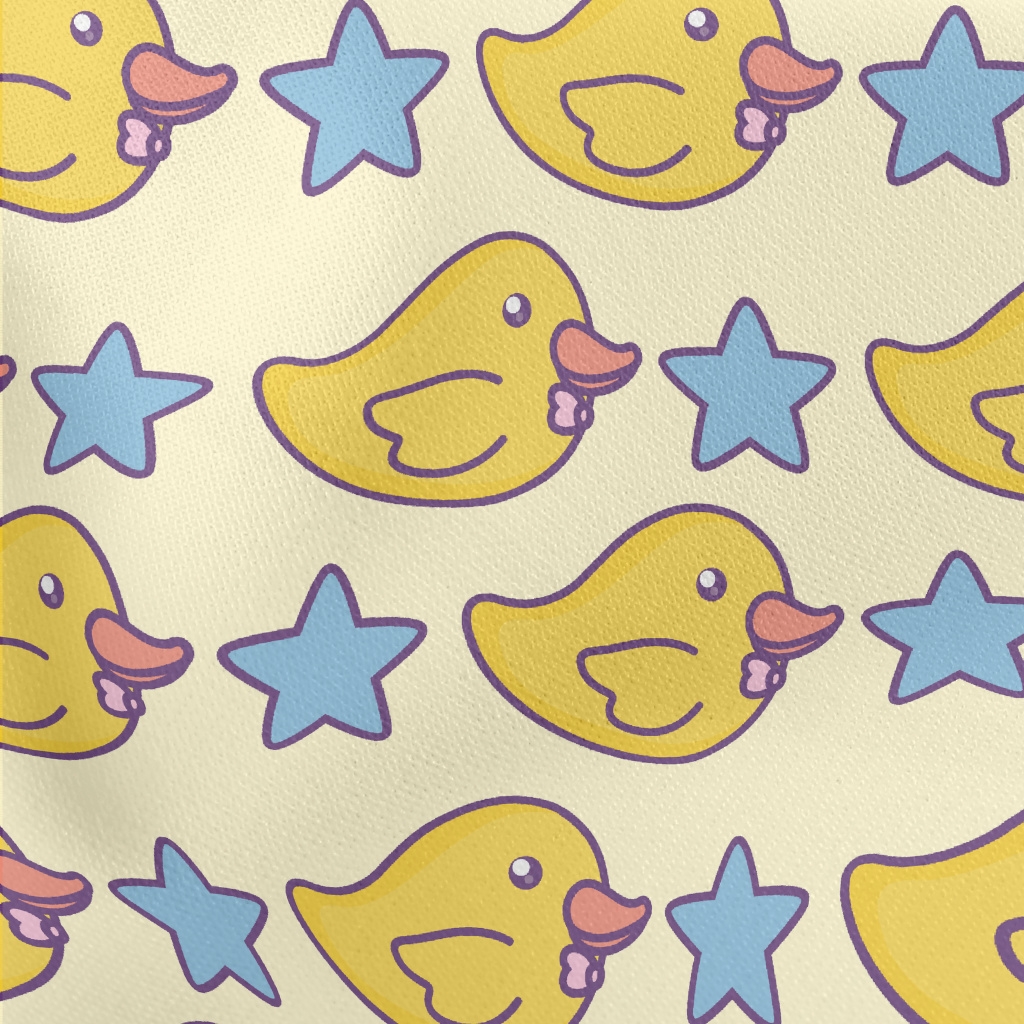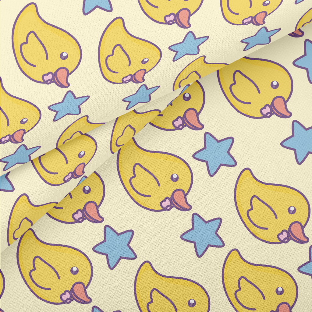 Yellow Duck And Stars Lightweight Cotton Poplin