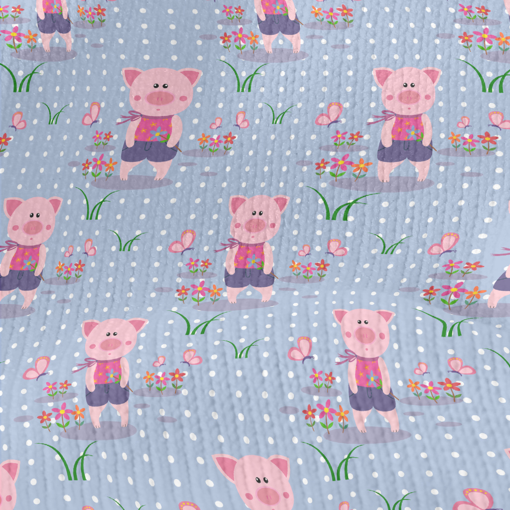 Pig Holding Flowers And Butter Stretch Jersey
