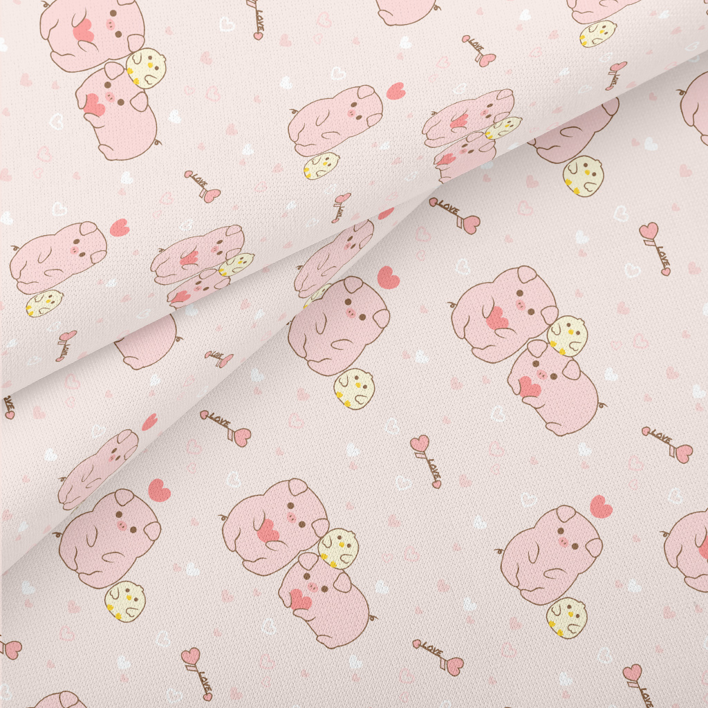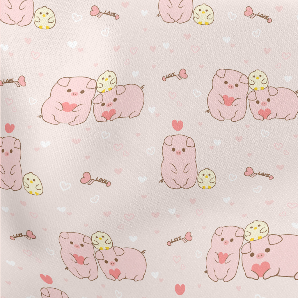 Pig And Chick Love Each Other Lightweight Cotton Poplin