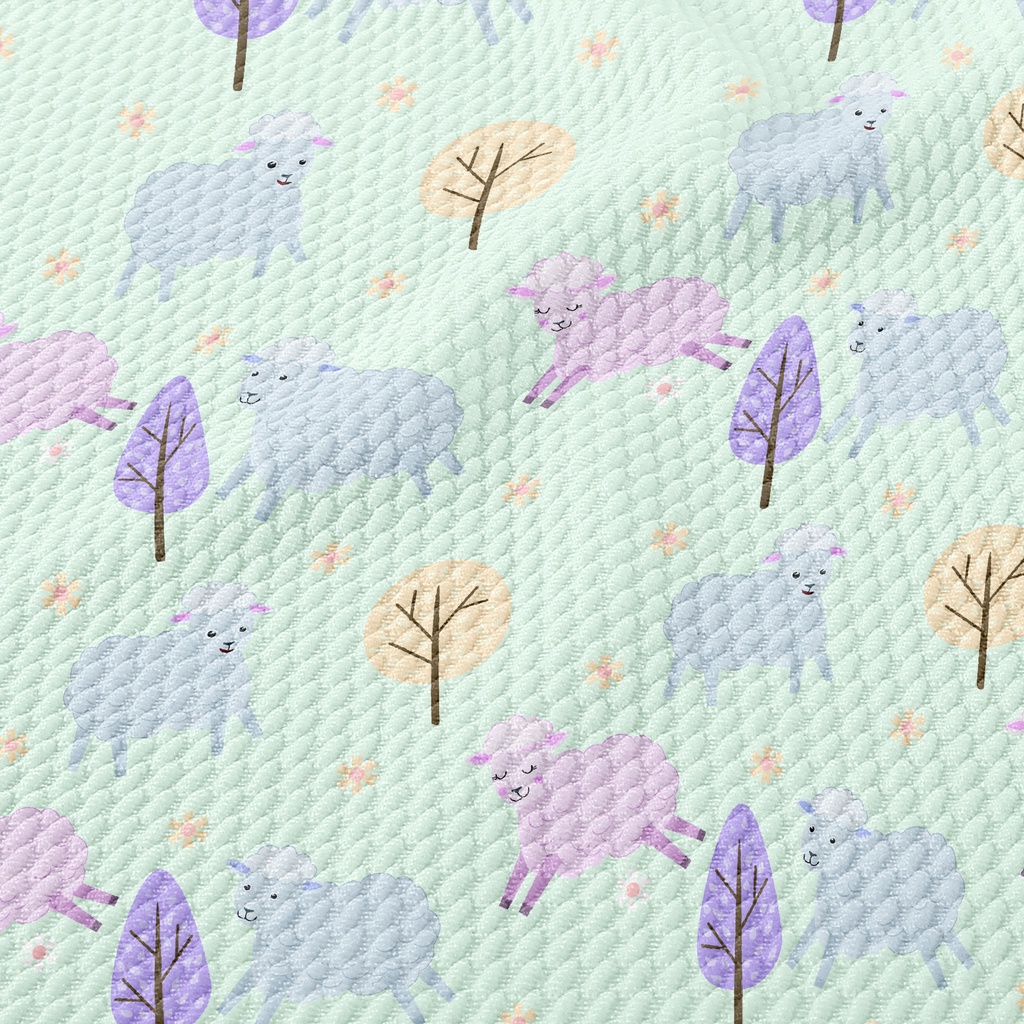 Sheep On Green Field Birdseye Piqué