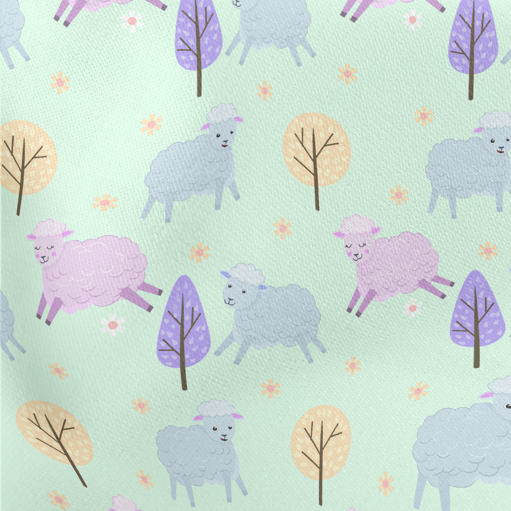 Sheep On Green Field Lightweight Cotton Poplin