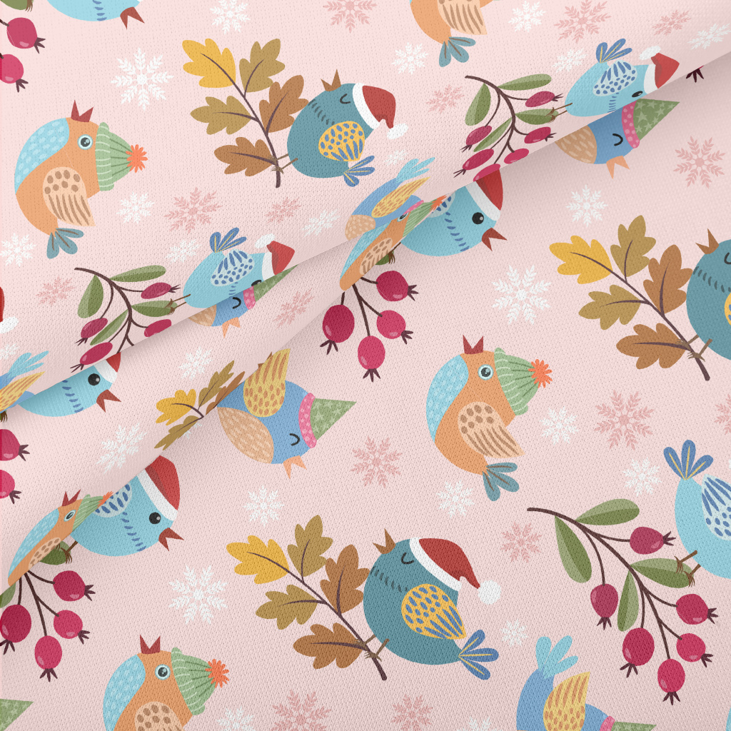 Bird Wearing Santa Hat Lightweight Cotton Poplin