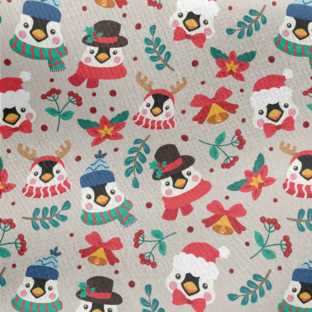 Christmas Dressed Penguin Jersey Backed Fleece