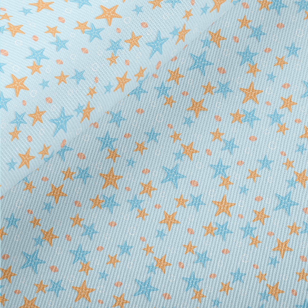 Blue Orange Starfish Midweight Cotton Poplin