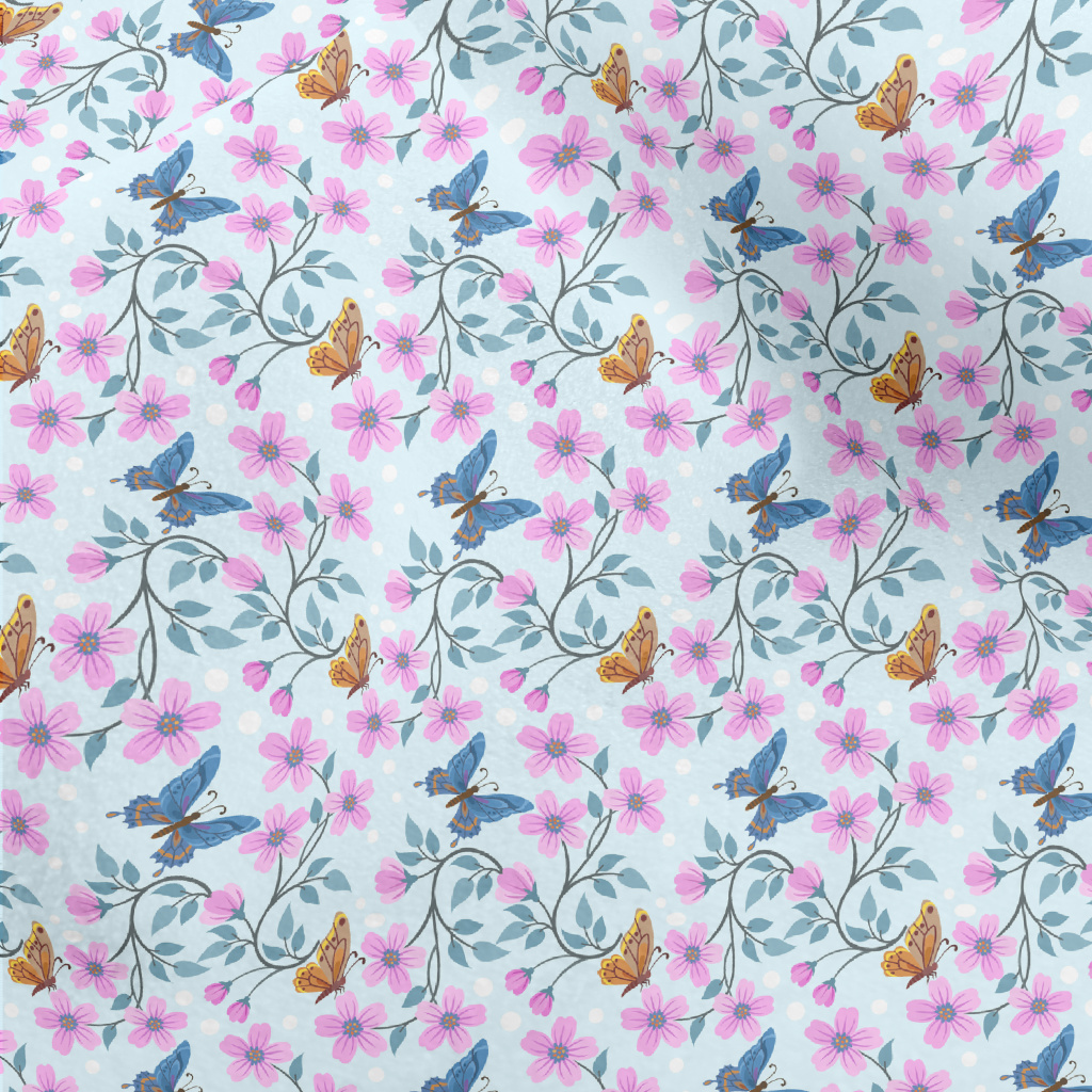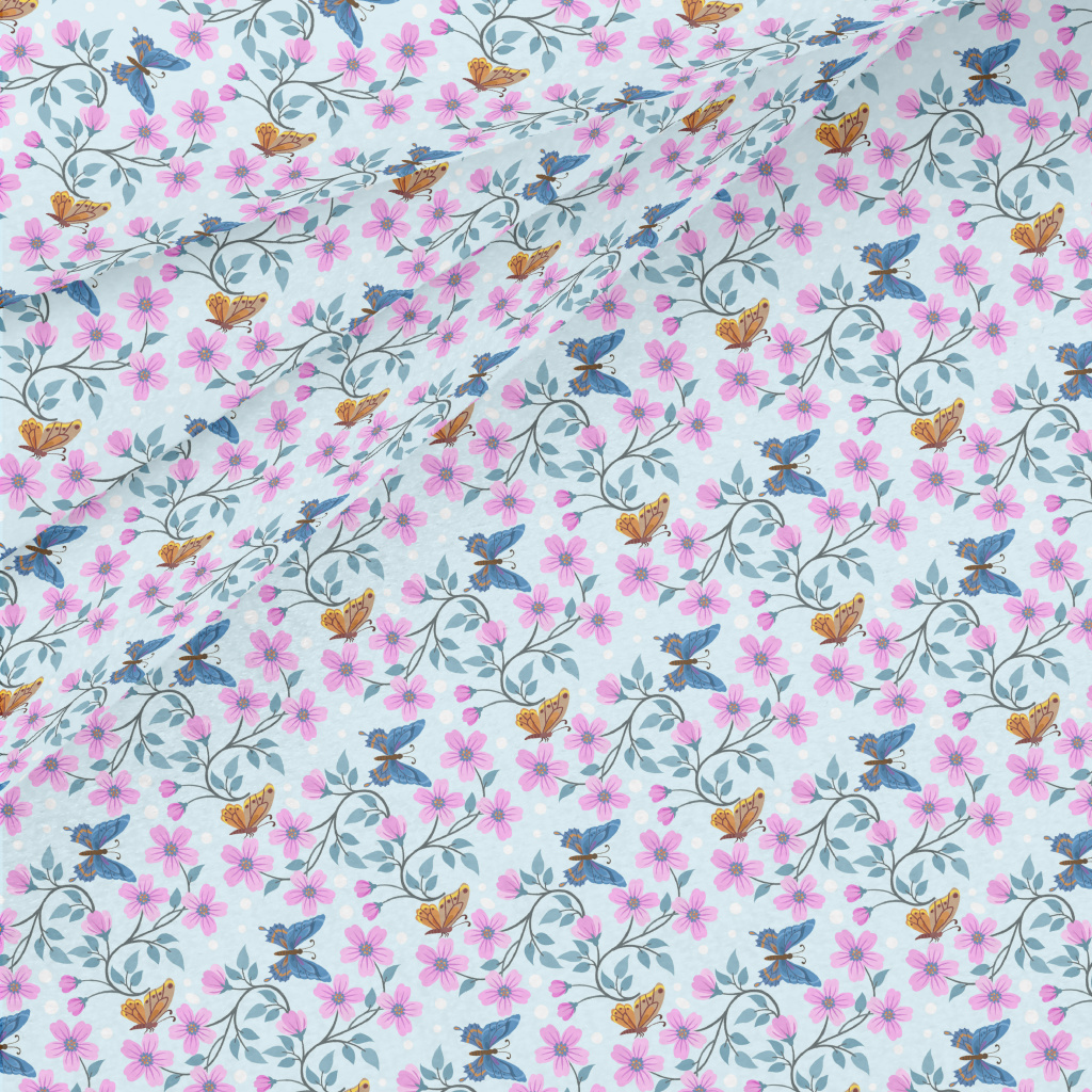 Pink Flowers And Butterflies Micro Fleece