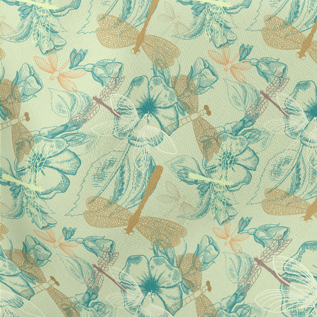 Flowers And Dragonflies Lightweight Cotton Poplin