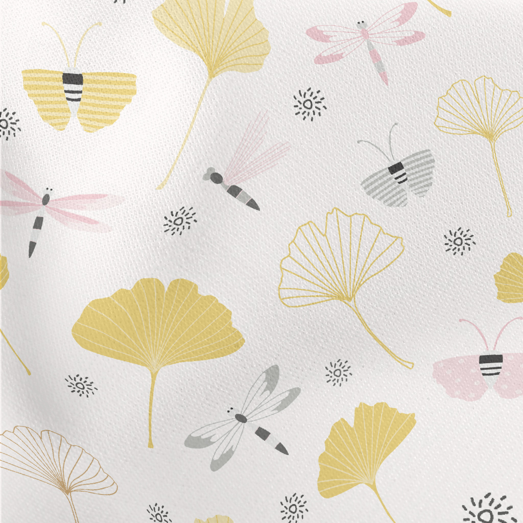 Dragonfly And Ginkgo Leaves Lightweight Cotton Poplin