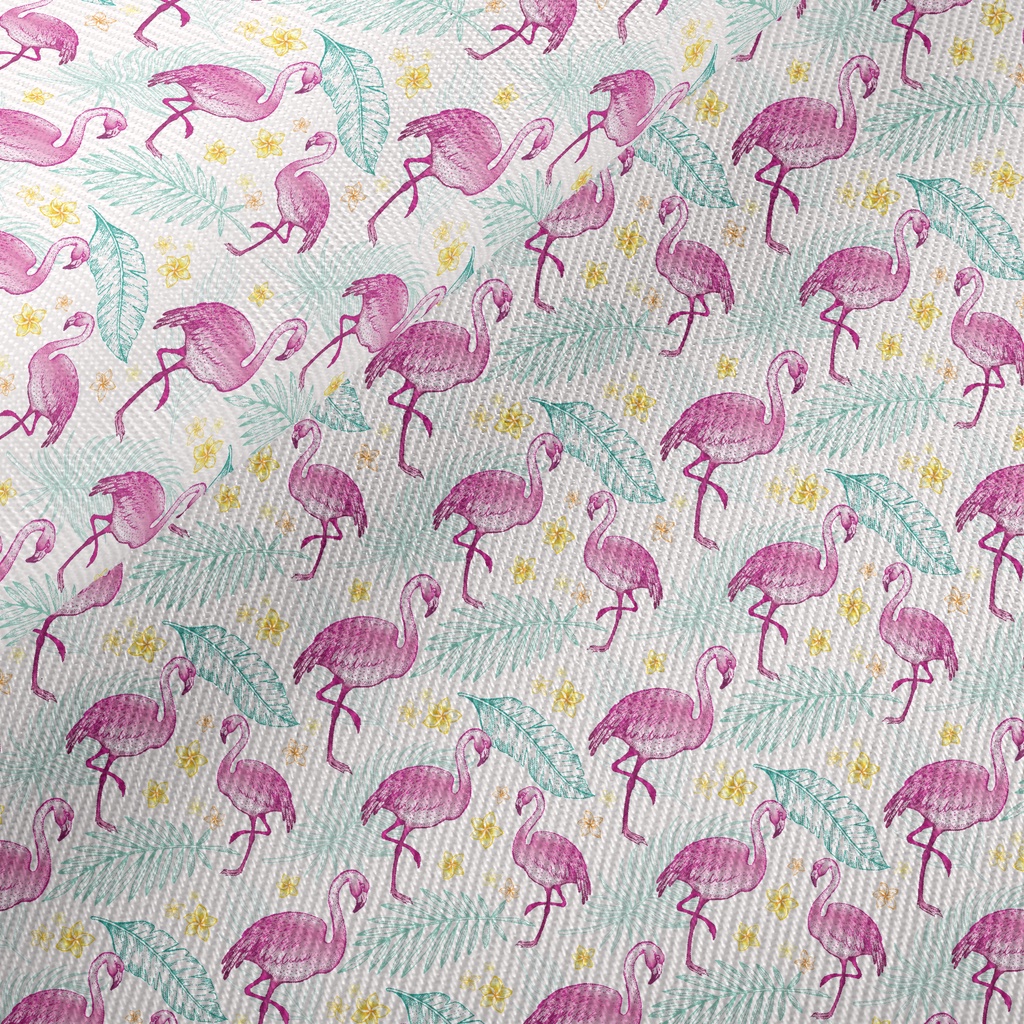 Green Leaves And Flamingos Twill