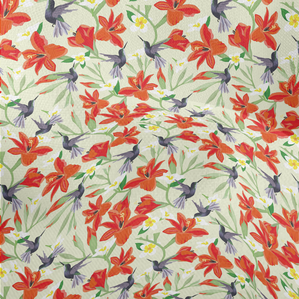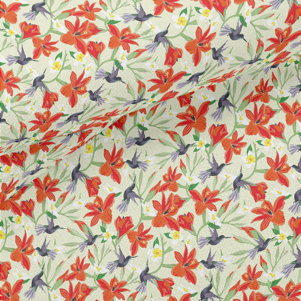 Hummingbird On Orange Flower Lightweight Performance Linen