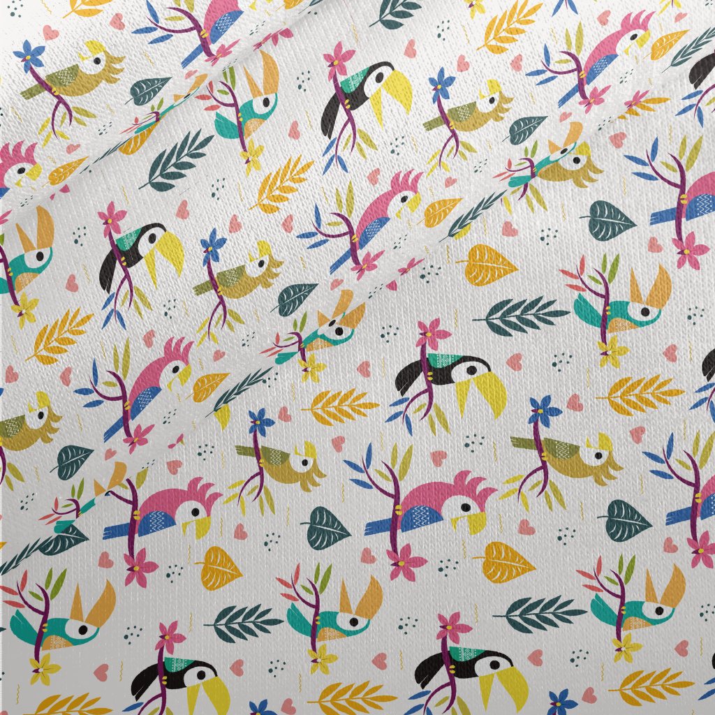 Cute Toucan And Parrot Jersey Backed Fleece