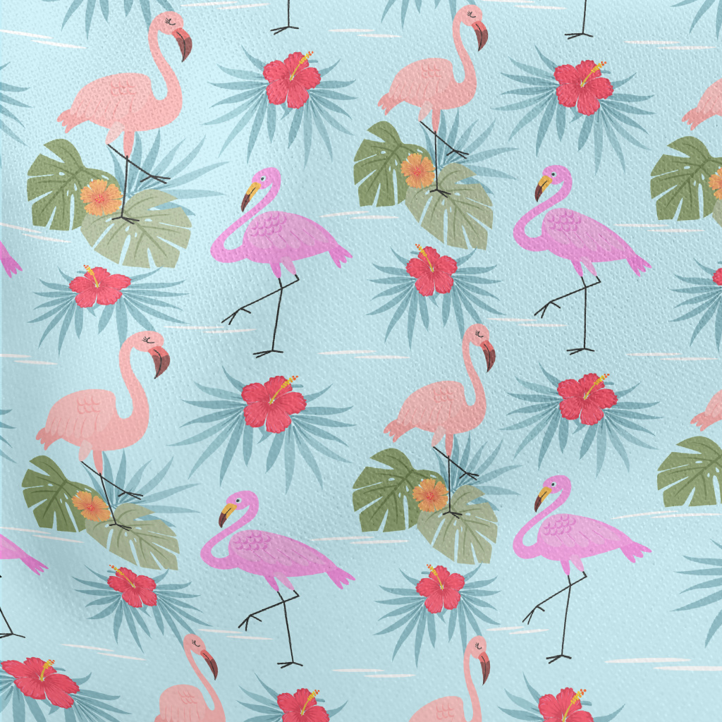 Hibiscus And Flamingo Lightweight Cotton Poplin
