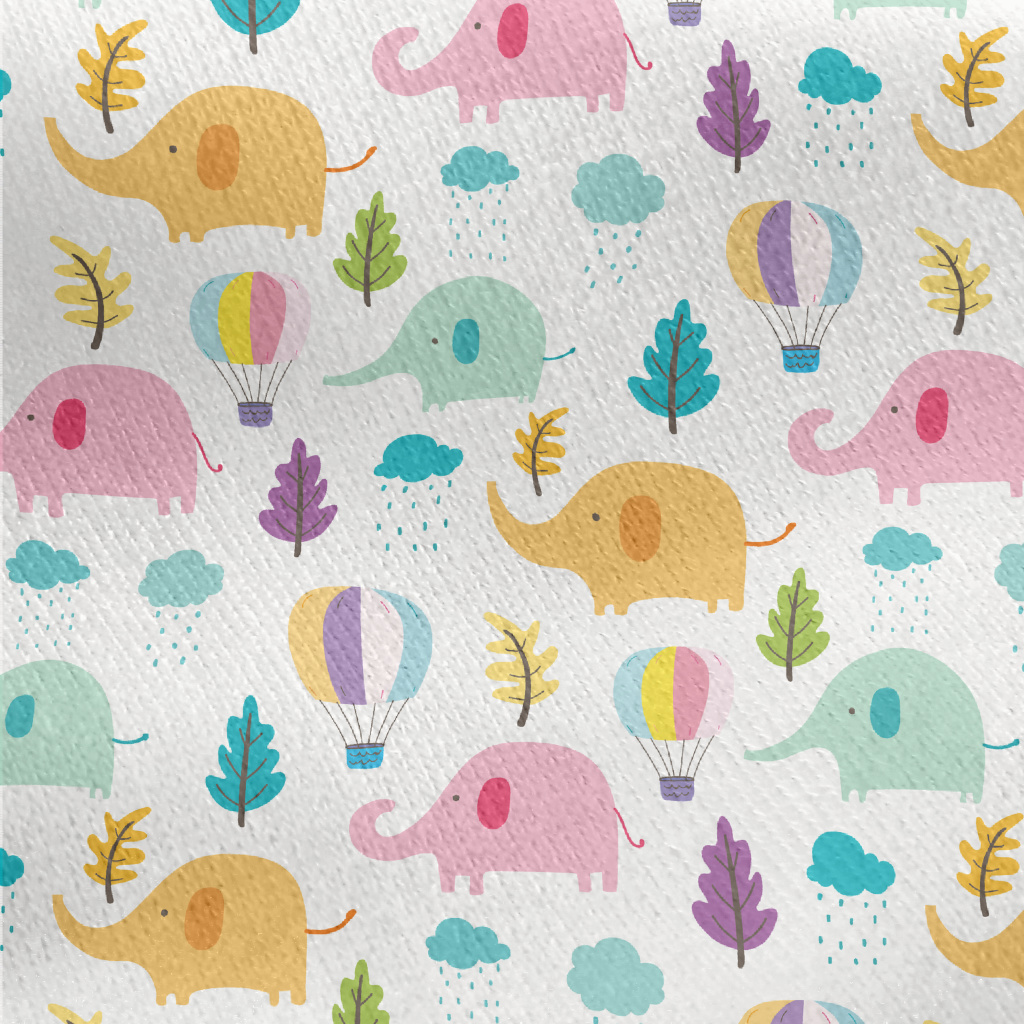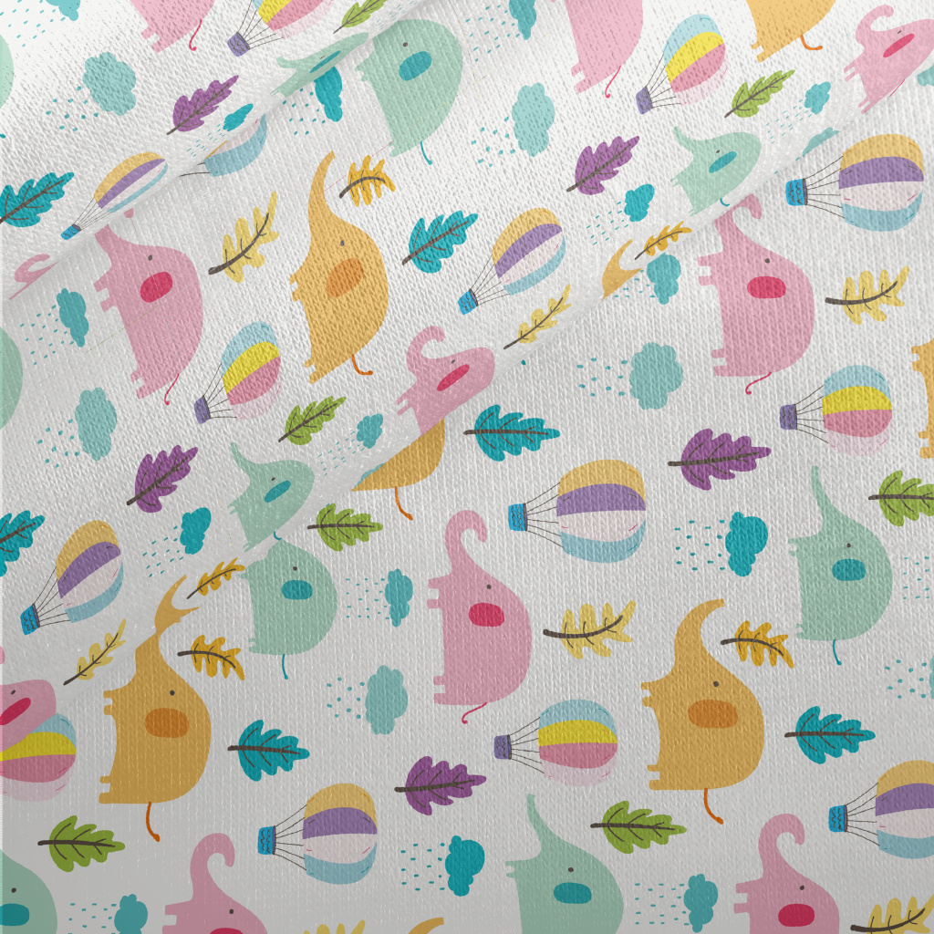 Hot Air Balloon Elephant Jersey Backed Fleece