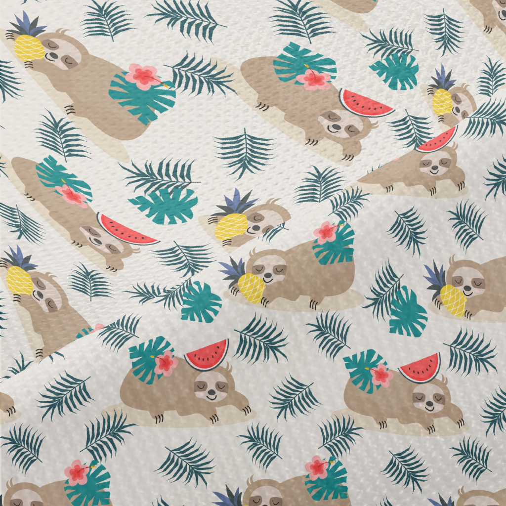 Tropical Fruits And Sloths Piqué