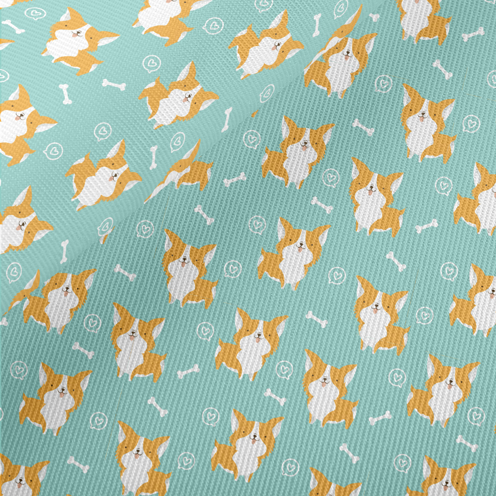 Corgi And Dog Bones Midweight Cotton Poplin