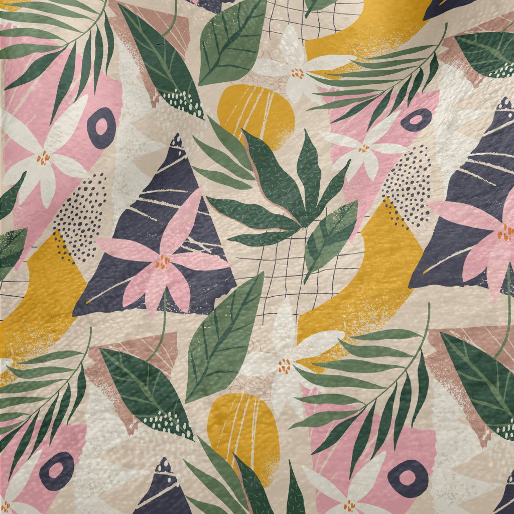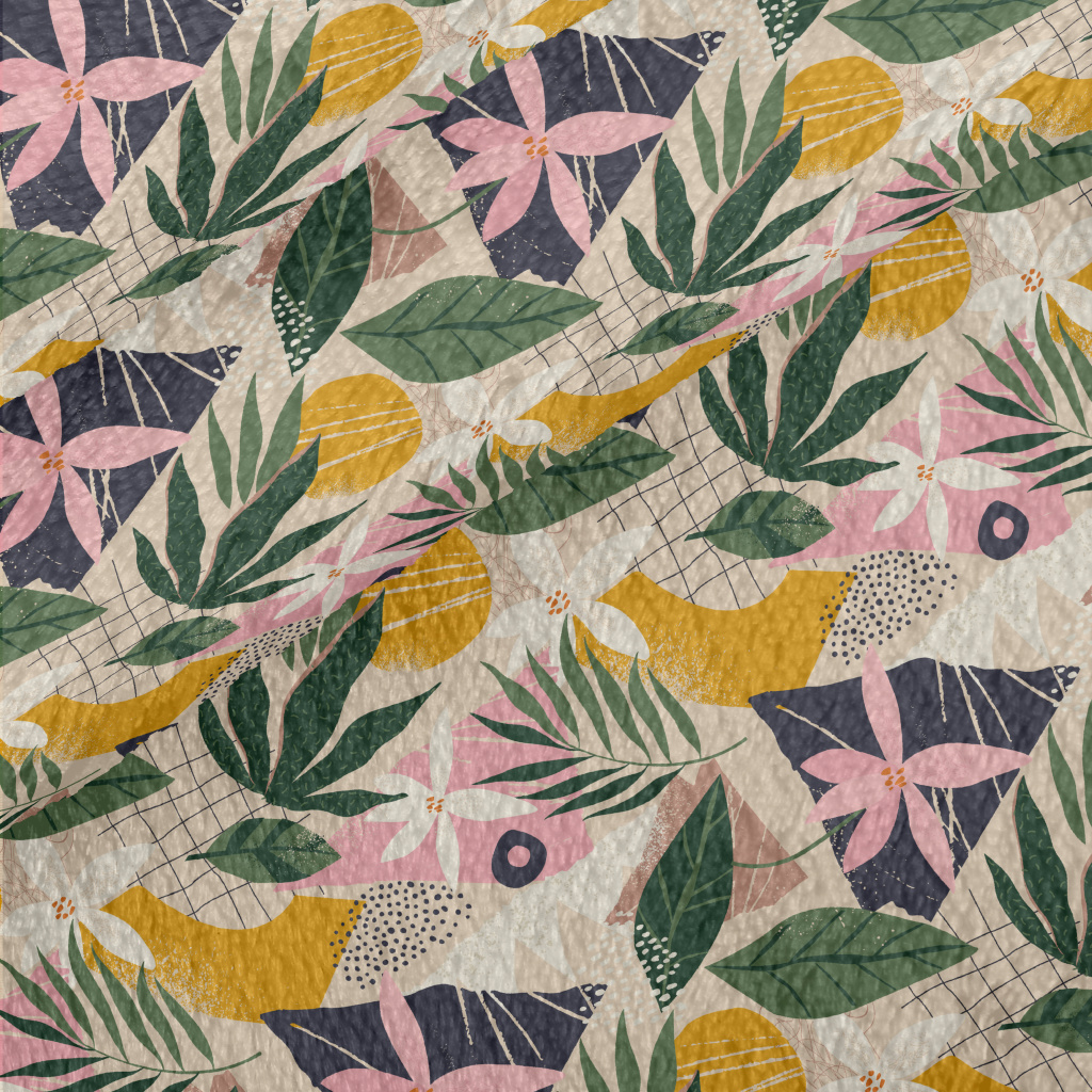 Collage Flowers Leaves Minky