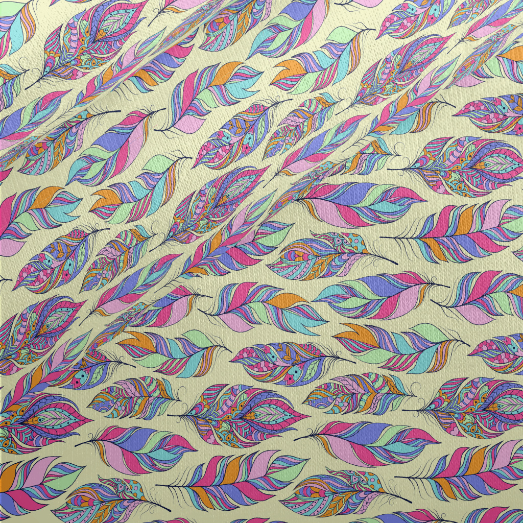 Beautiful Pattern Feathers Jersey Backed Fleece