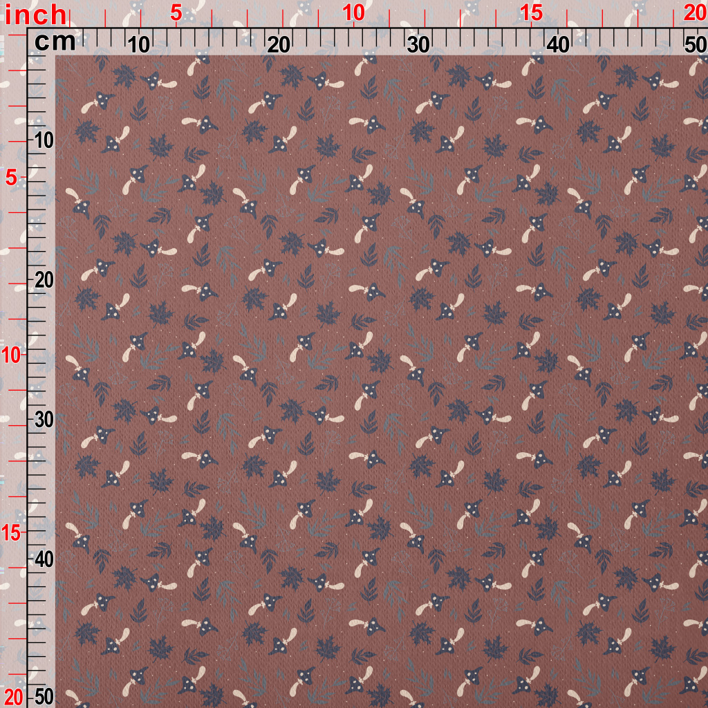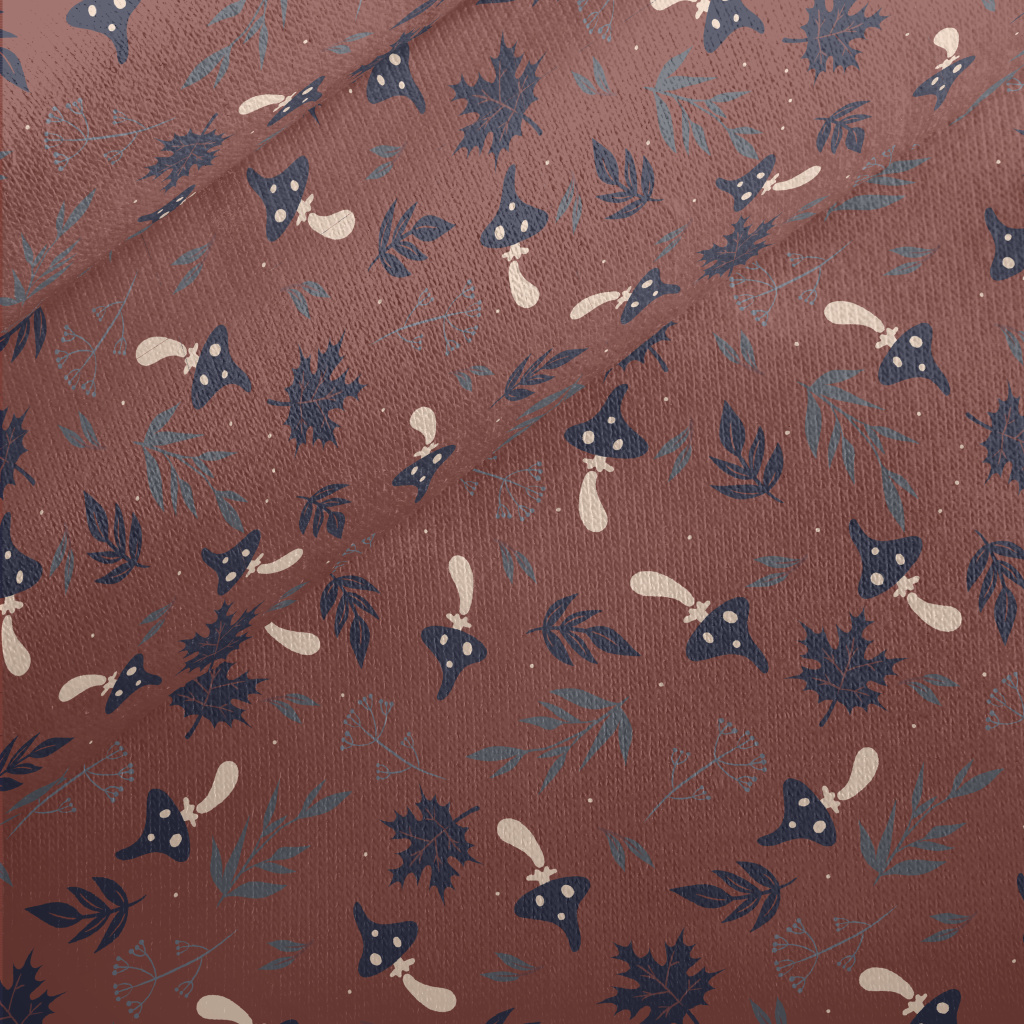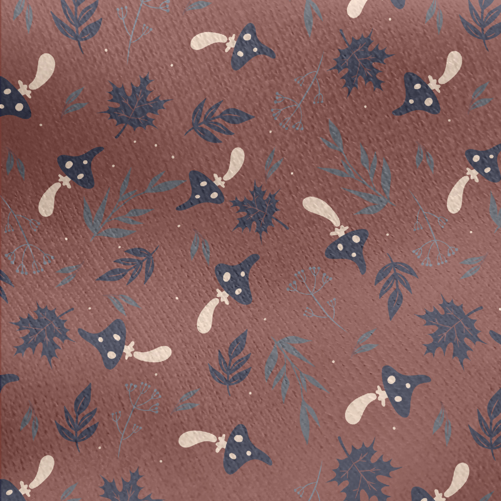 Mushrooms And Fallen Leaves Jersey Backed Fleece