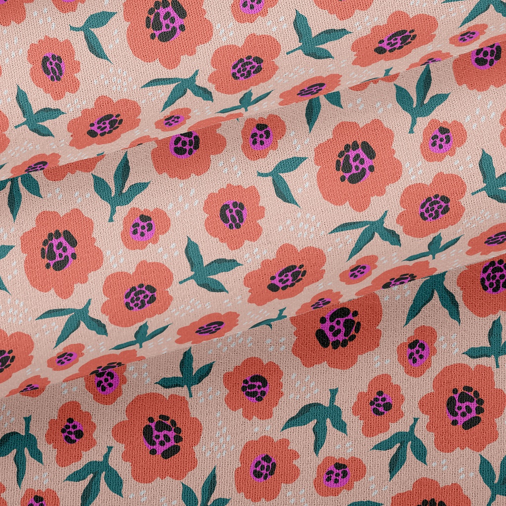Doodle Flowers And Leaves Chiffon