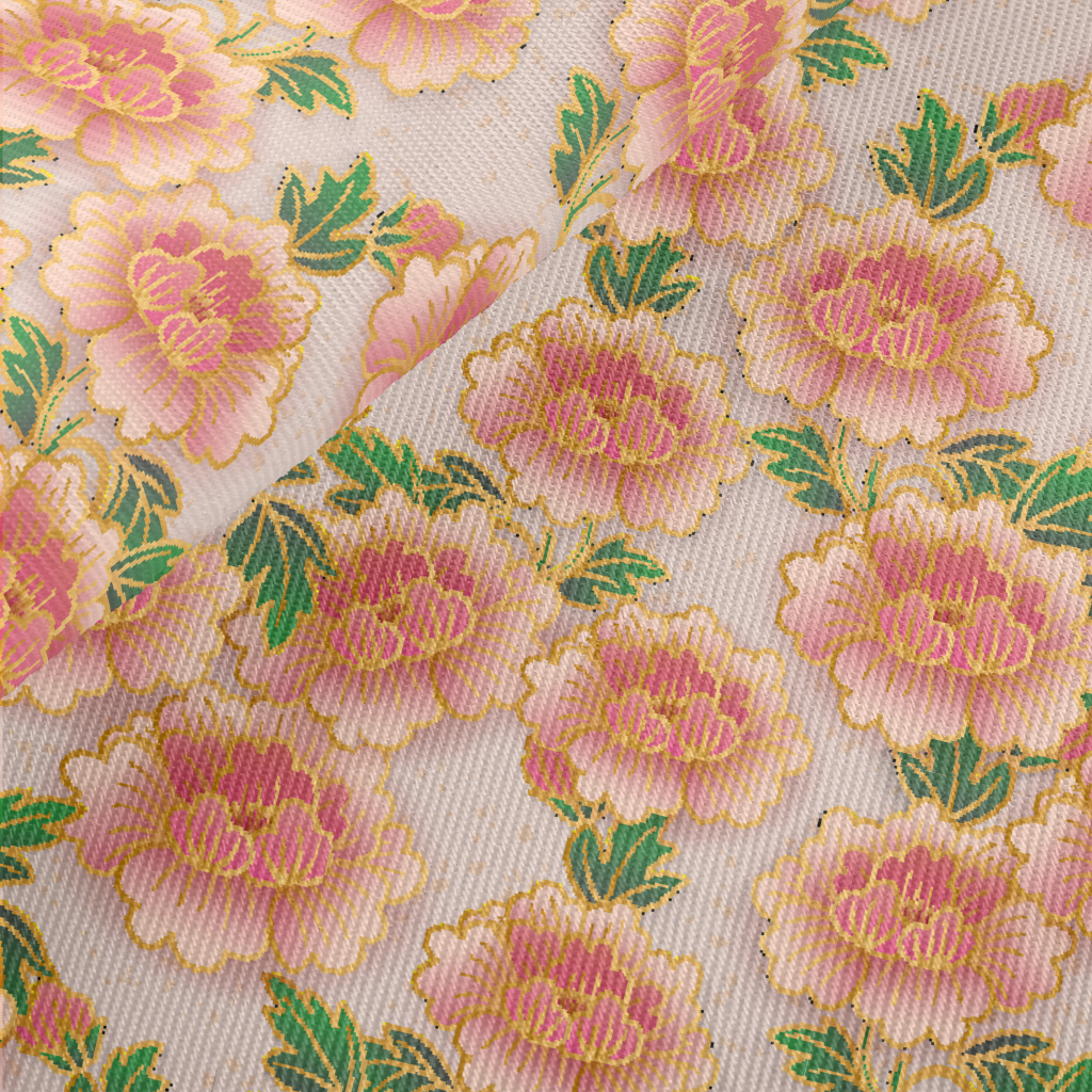 Happy And Sweet Peonies Midweight Cotton Poplin