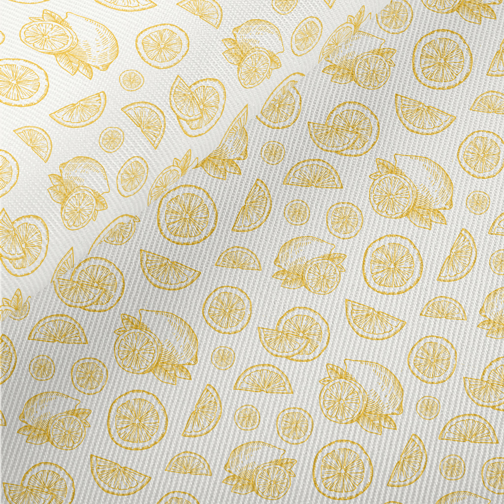 Hand Drawn Sliced Lemon Midweight Cotton Poplin