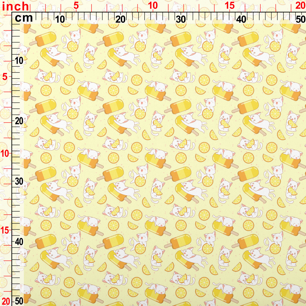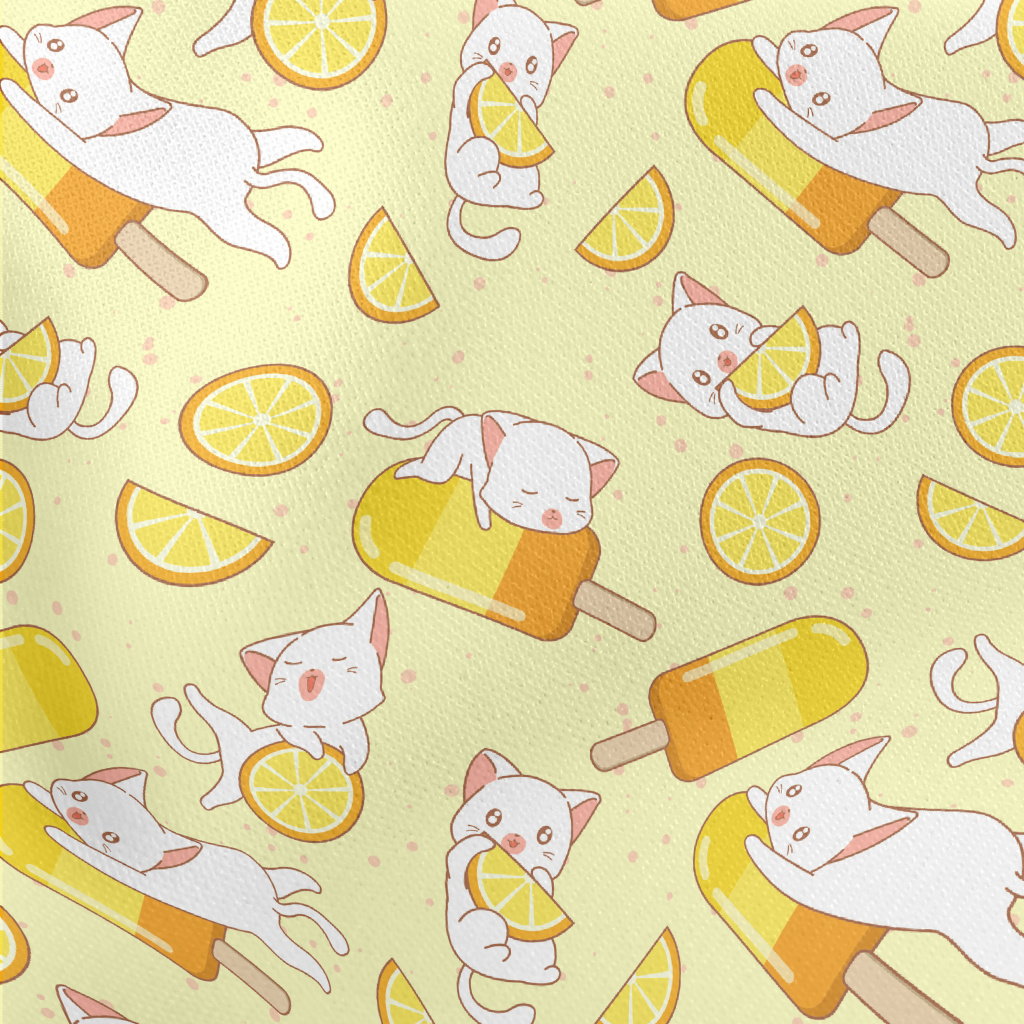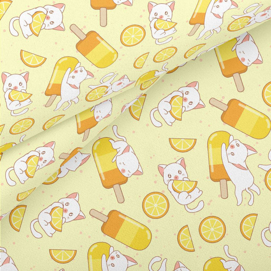 Orange Popsicle And Cat Lightweight Cotton Poplin