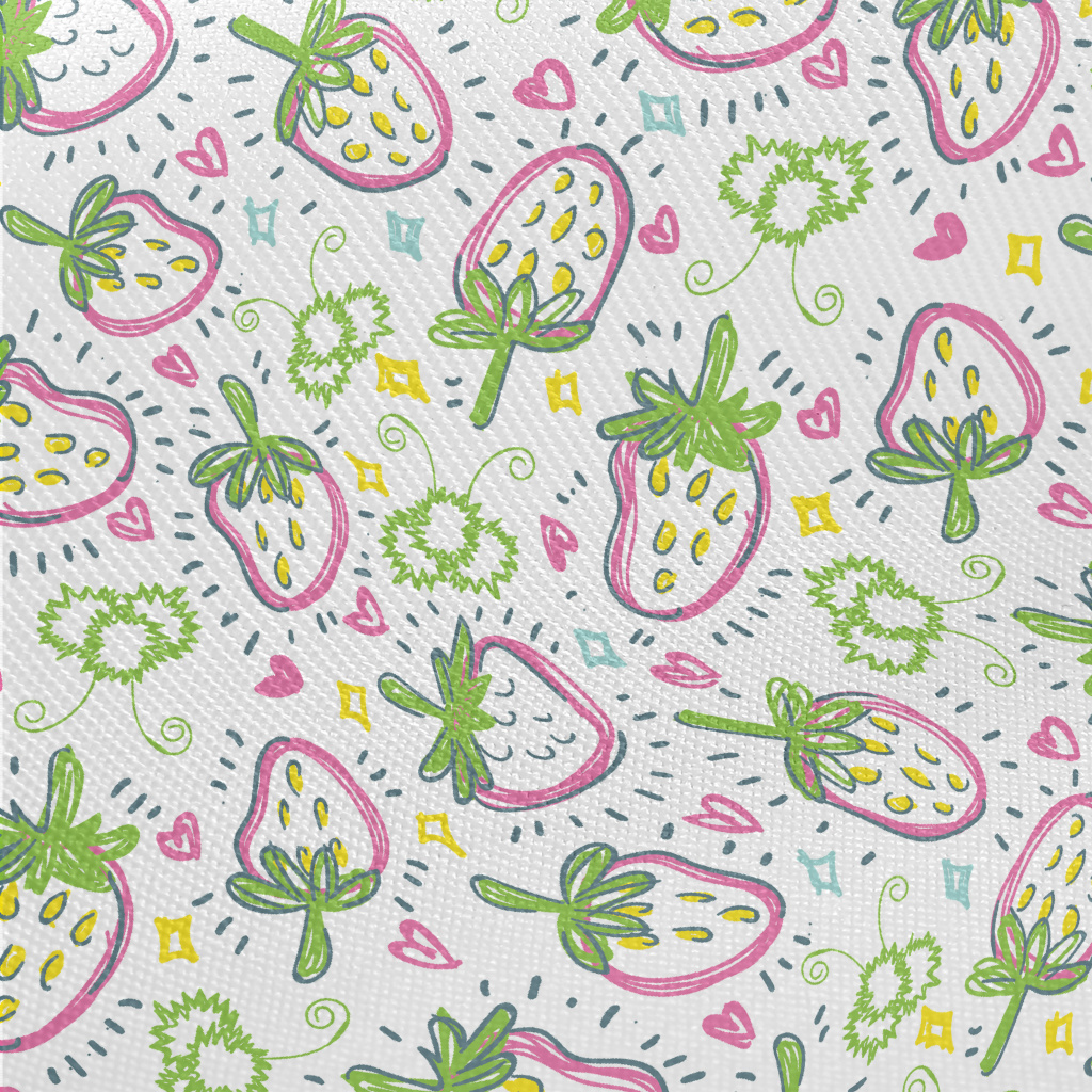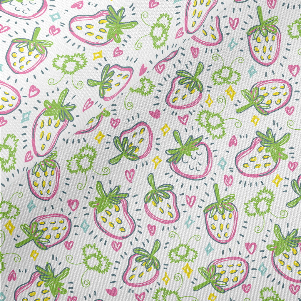 Hand Drawn Strawberry Hearts Midweight Cotton Poplin