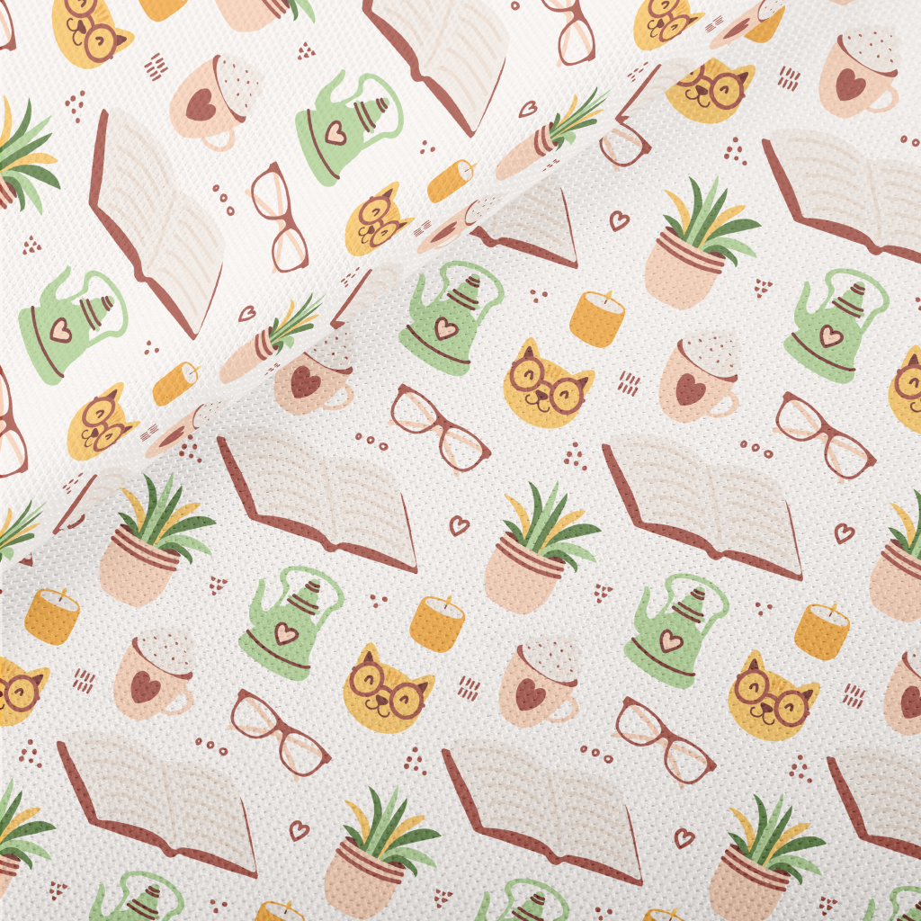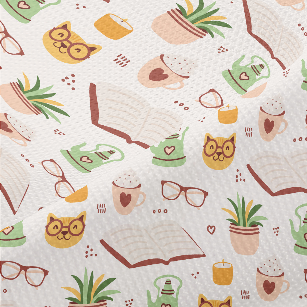 Spectacled Cat Reading A Book Piqué