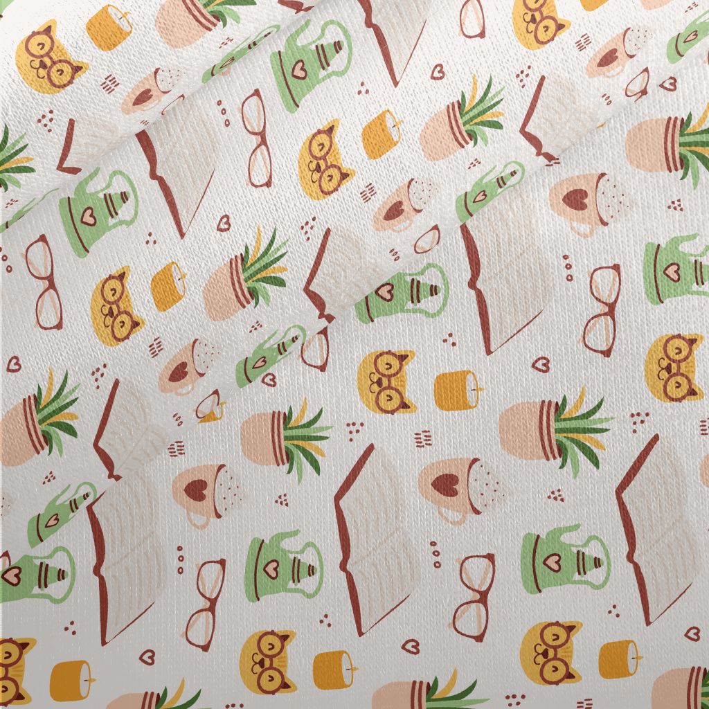 Spectacled Cat Reading A Book Jersey Backed Fleece