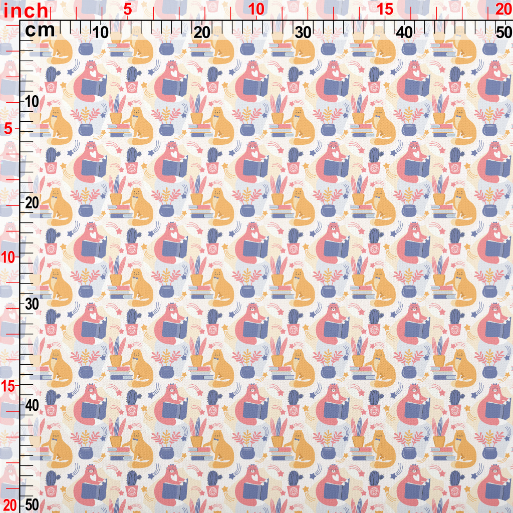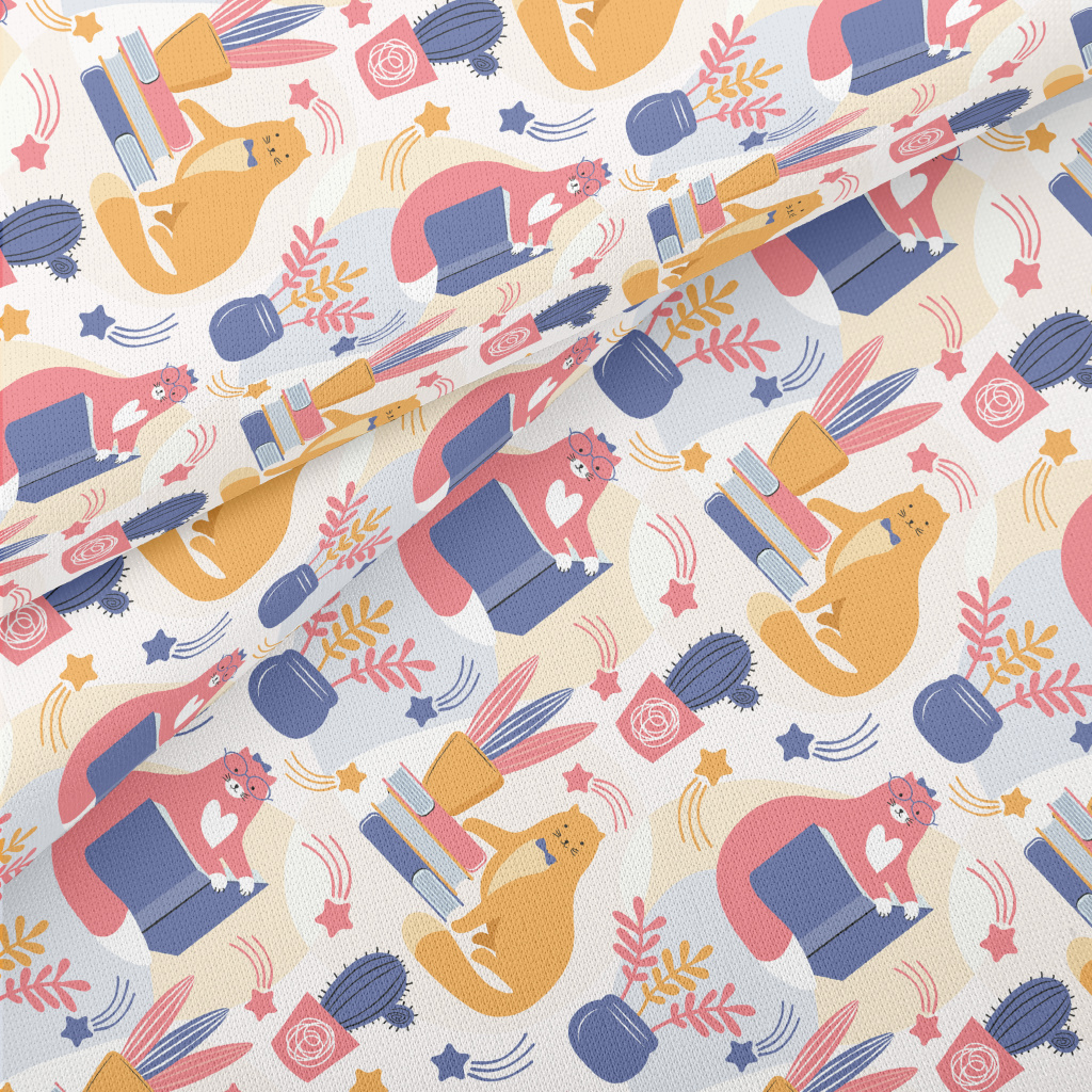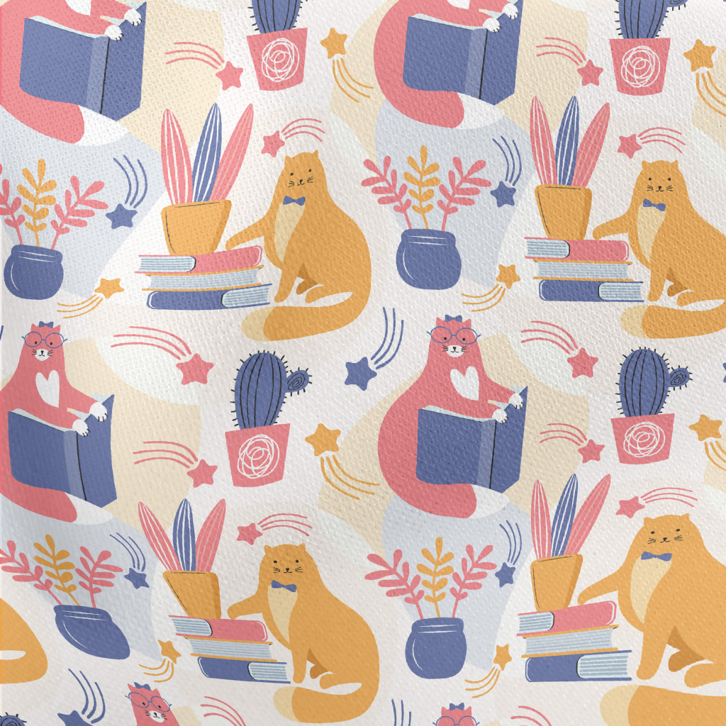 Spectacled Cat Admiring Flower Lightweight Cotton Poplin
