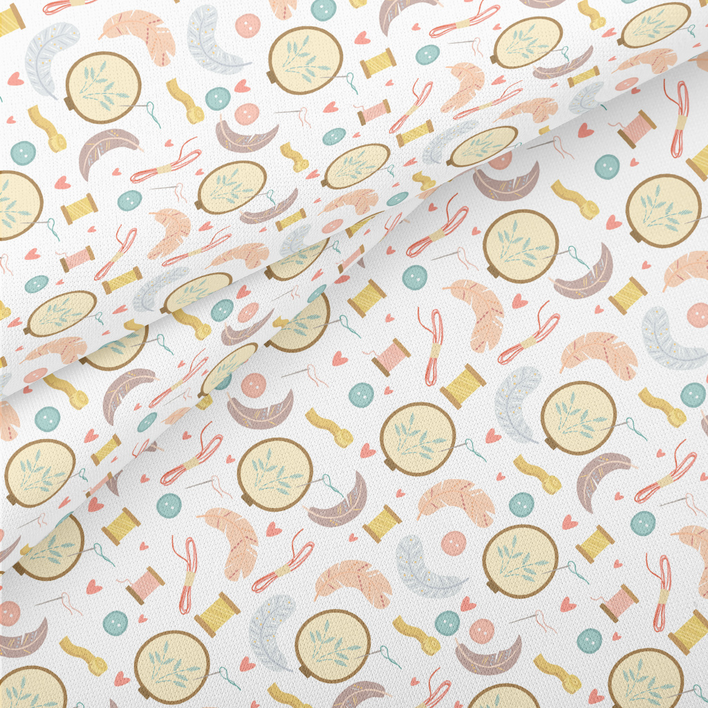 Hand Embroidered Feathers Lightweight Cotton Poplin
