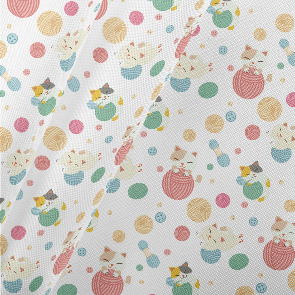 Cat Playing With Yarn Pongee