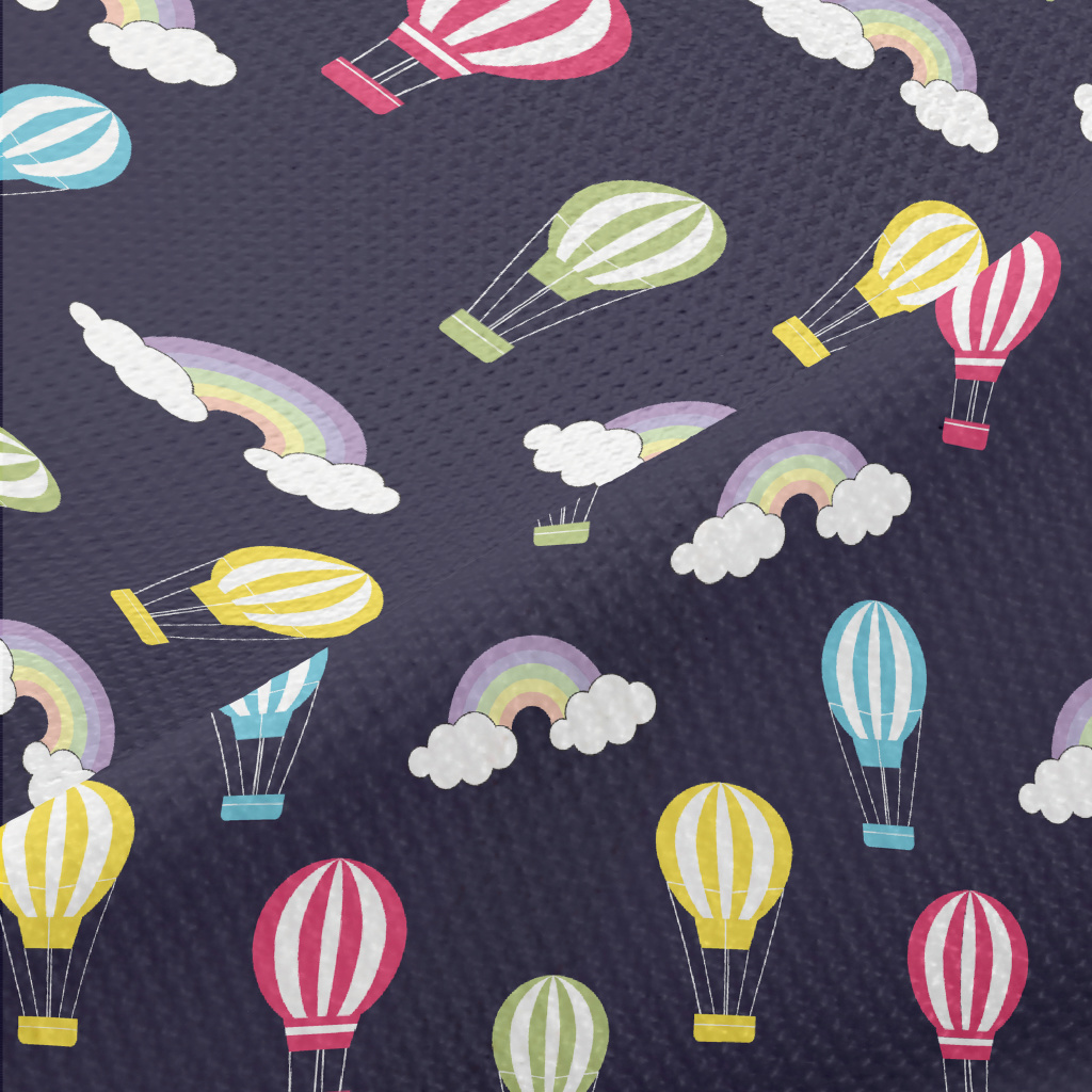 Hot Air Balloon Flying In Nigh Piqué
