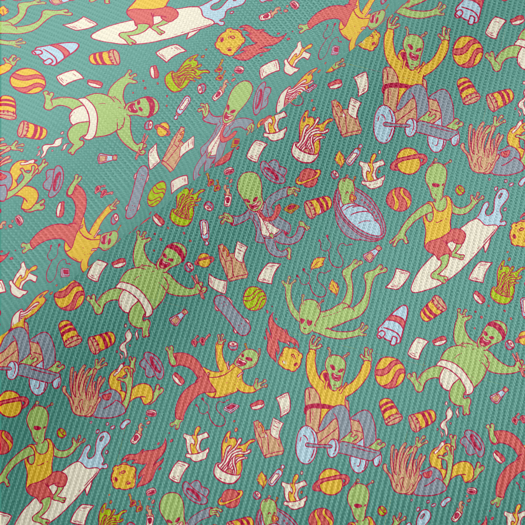 Aliens Making A Scene In Space Midweight Cotton Poplin