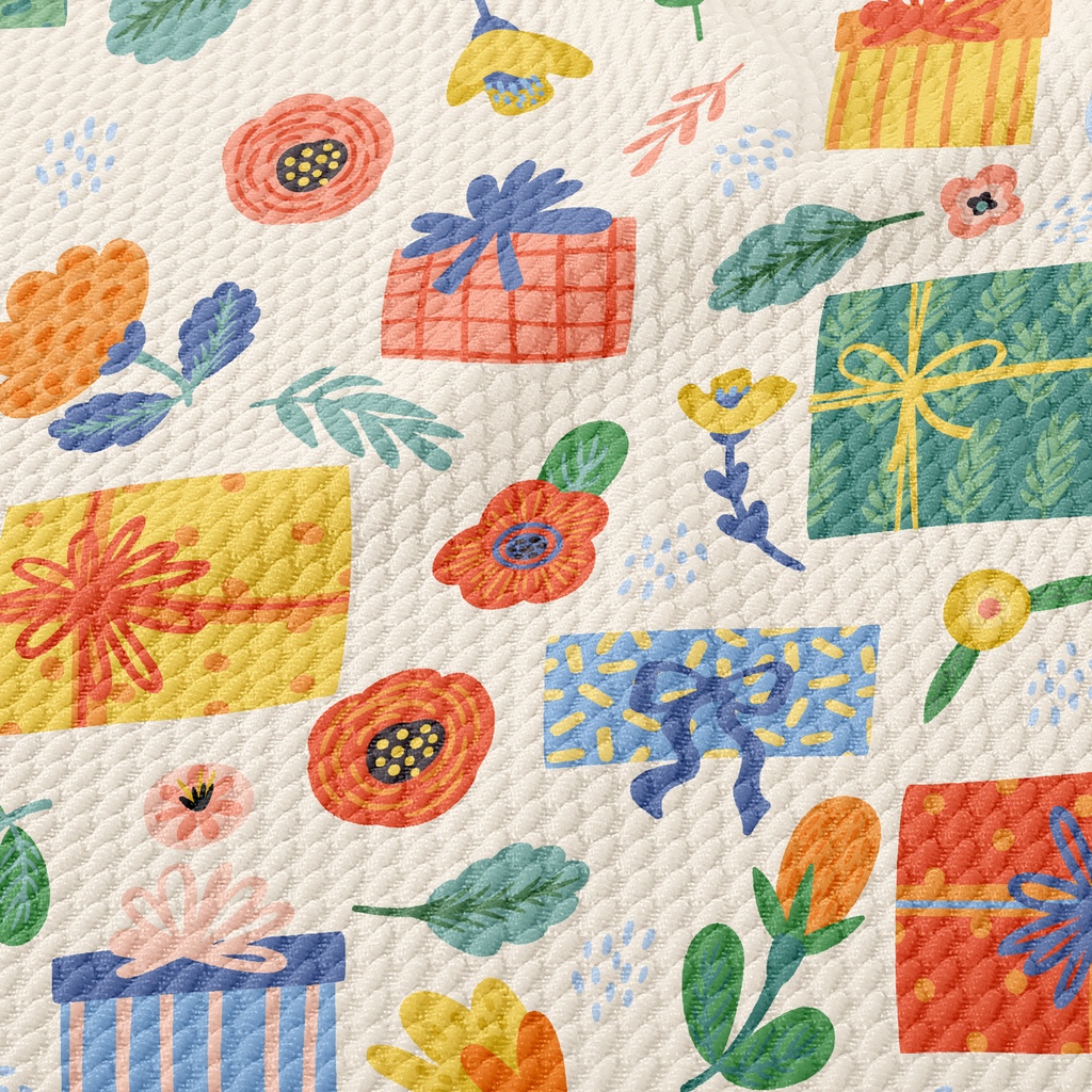 Flowers And Gift Boxes Birdseye Piqué