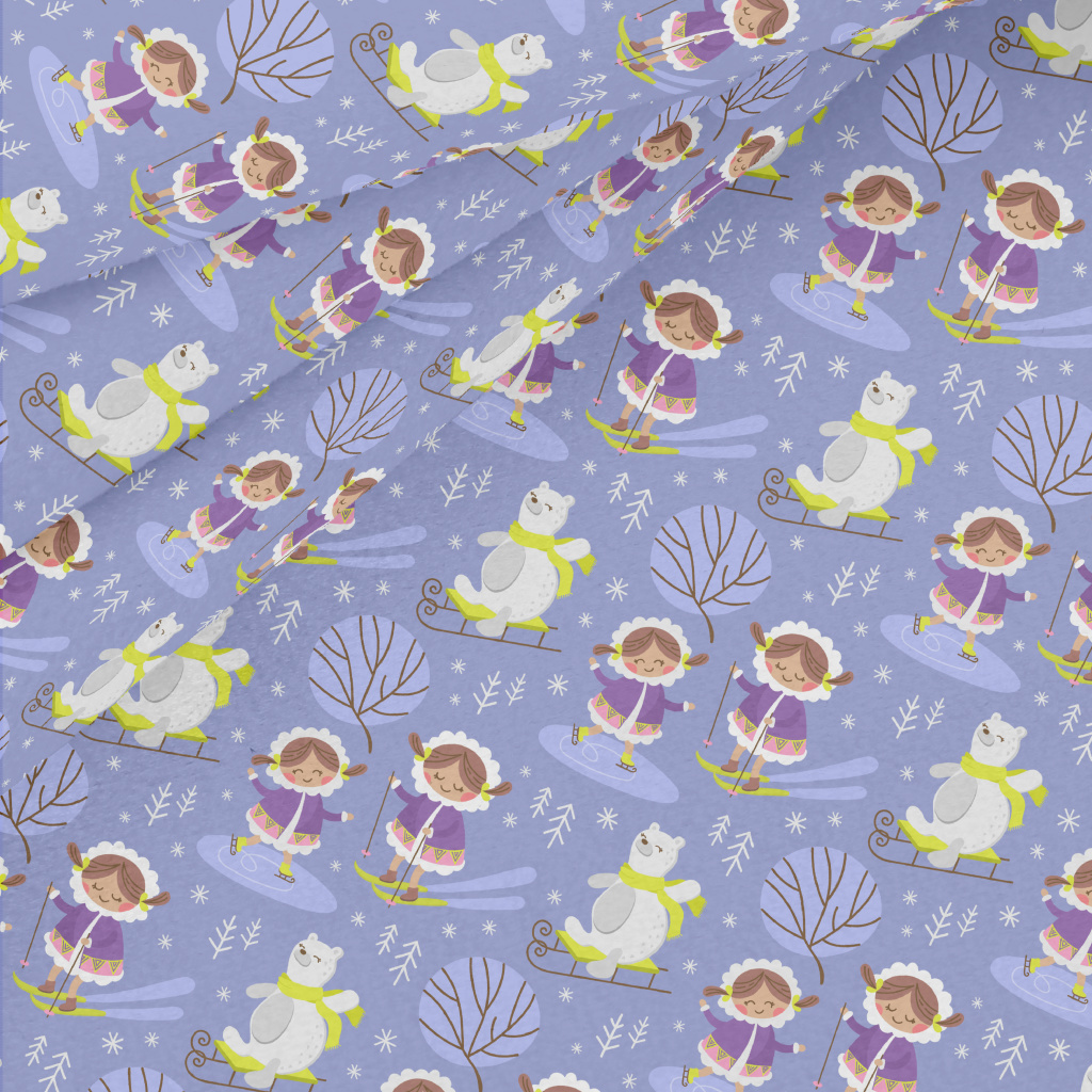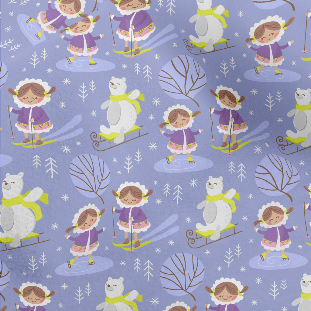 Ski Girl And Bear Micro Fleece