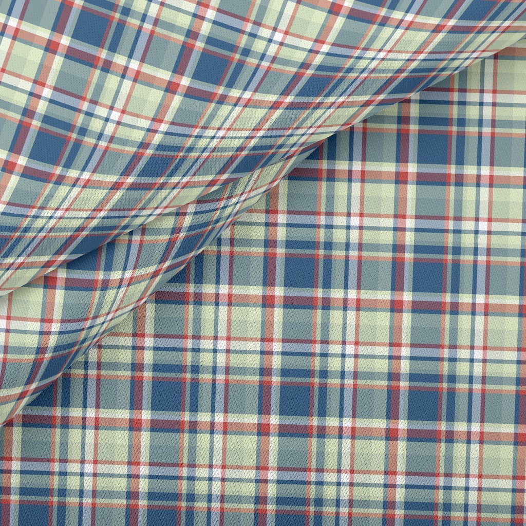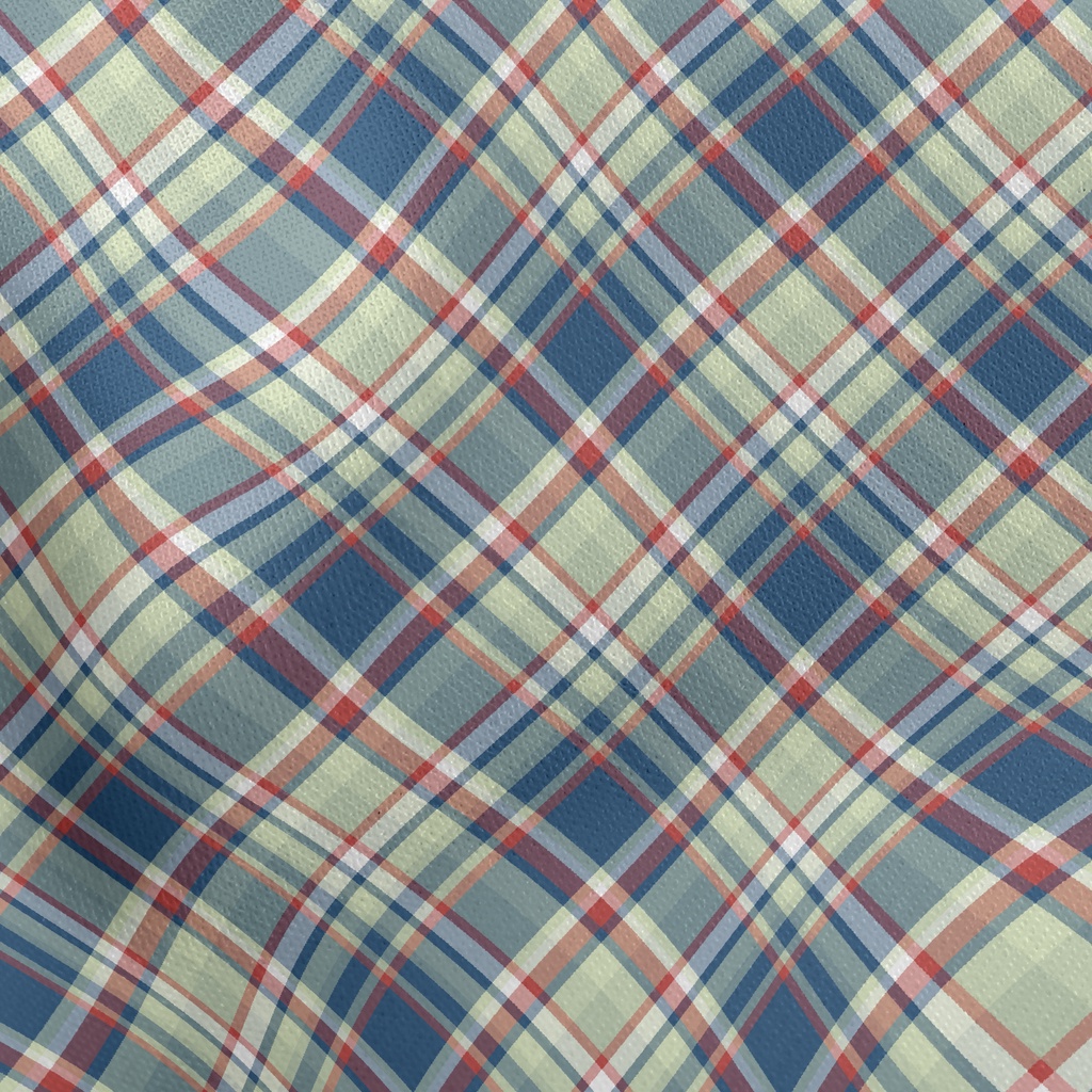 Red Grid On Blue Background Stretch Ponte