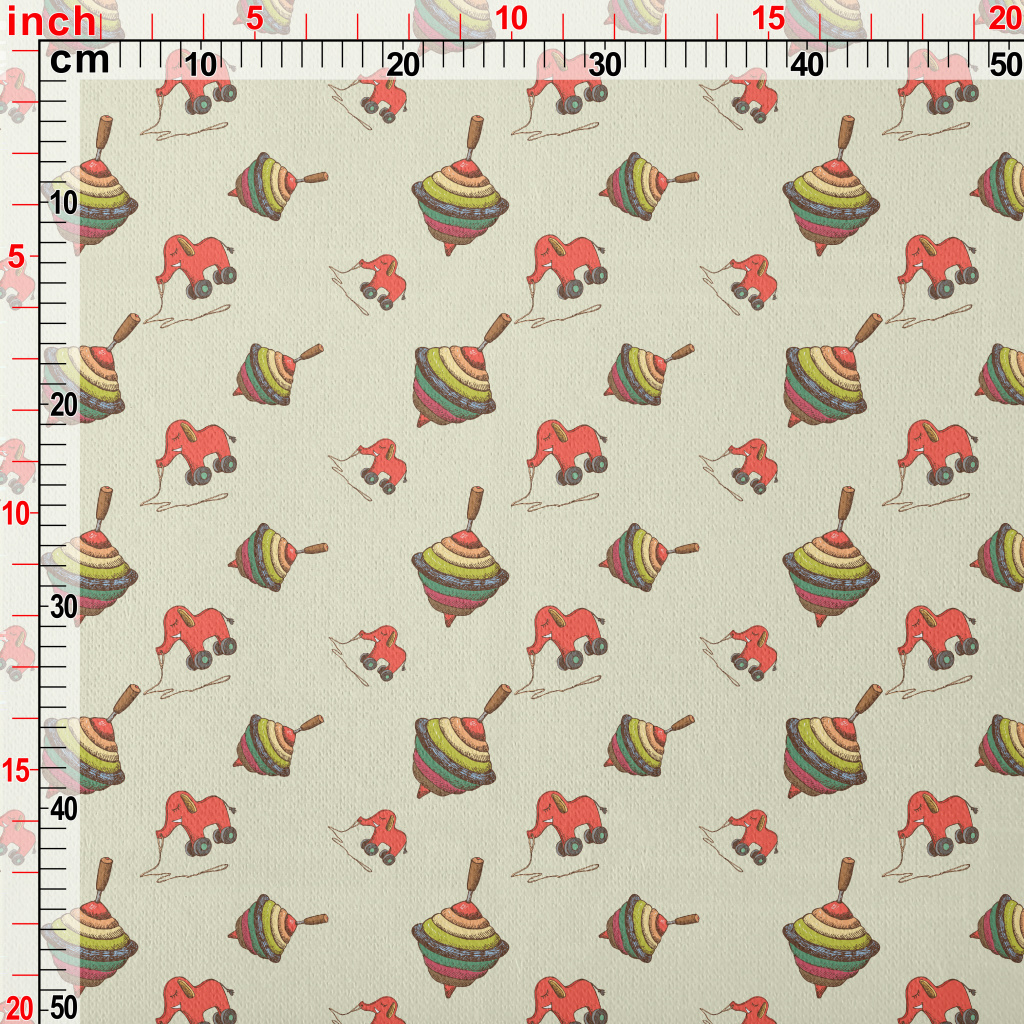 Toy Top And Elephant Jersey Backed Fleece