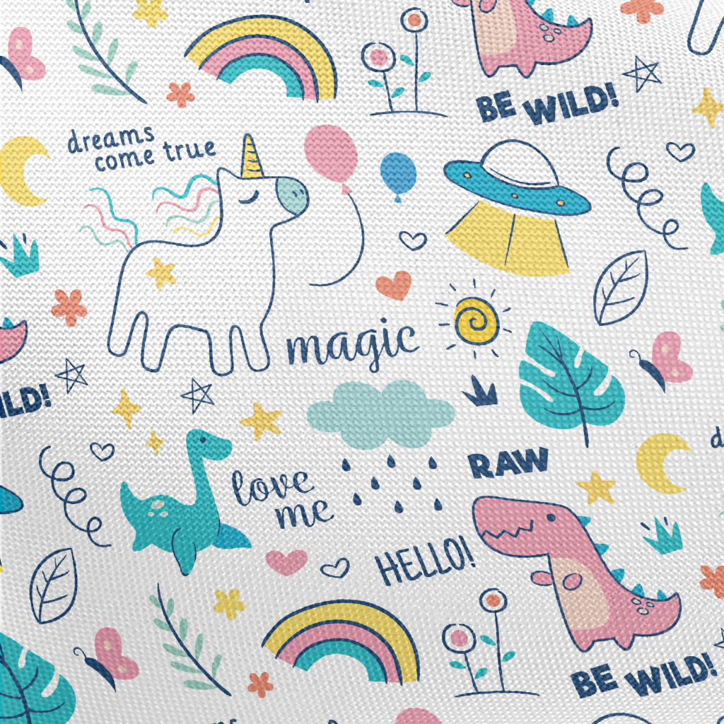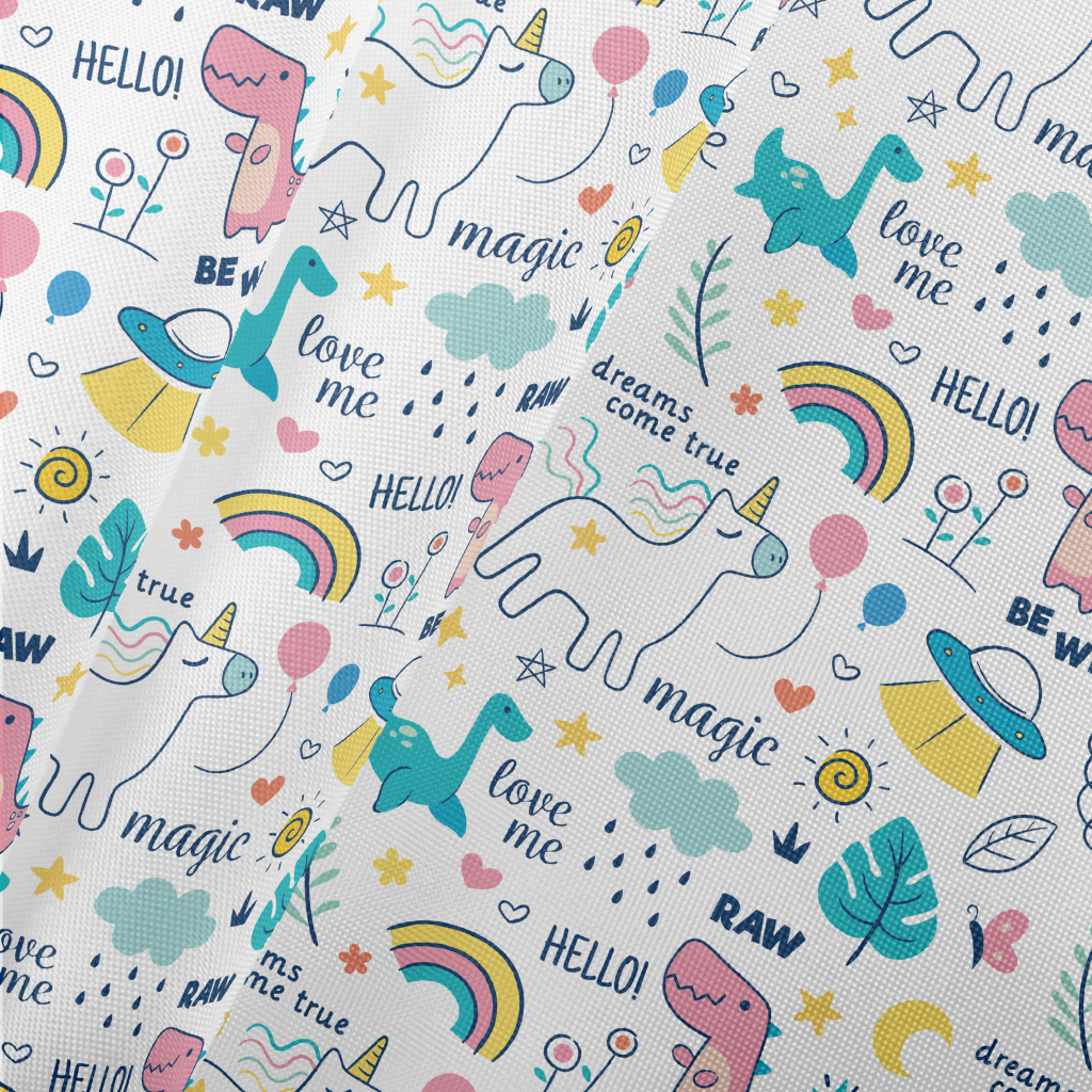 Cute Dinosaur Unicorn Pongee