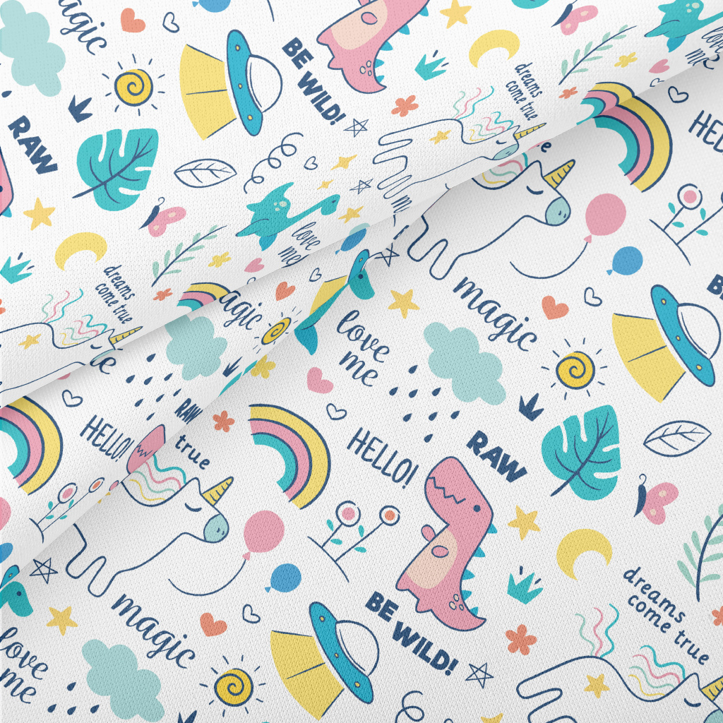 Cute Dinosaur Unicorn Lightweight Cotton Poplin