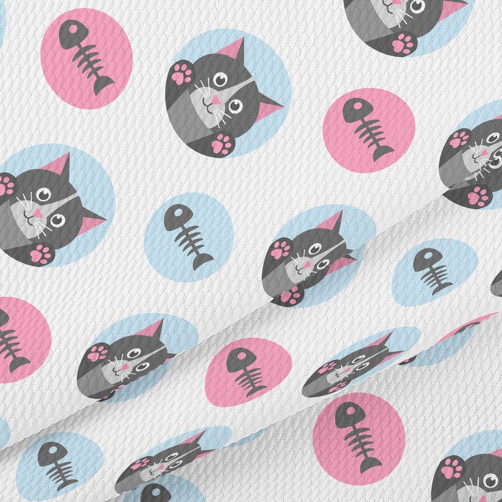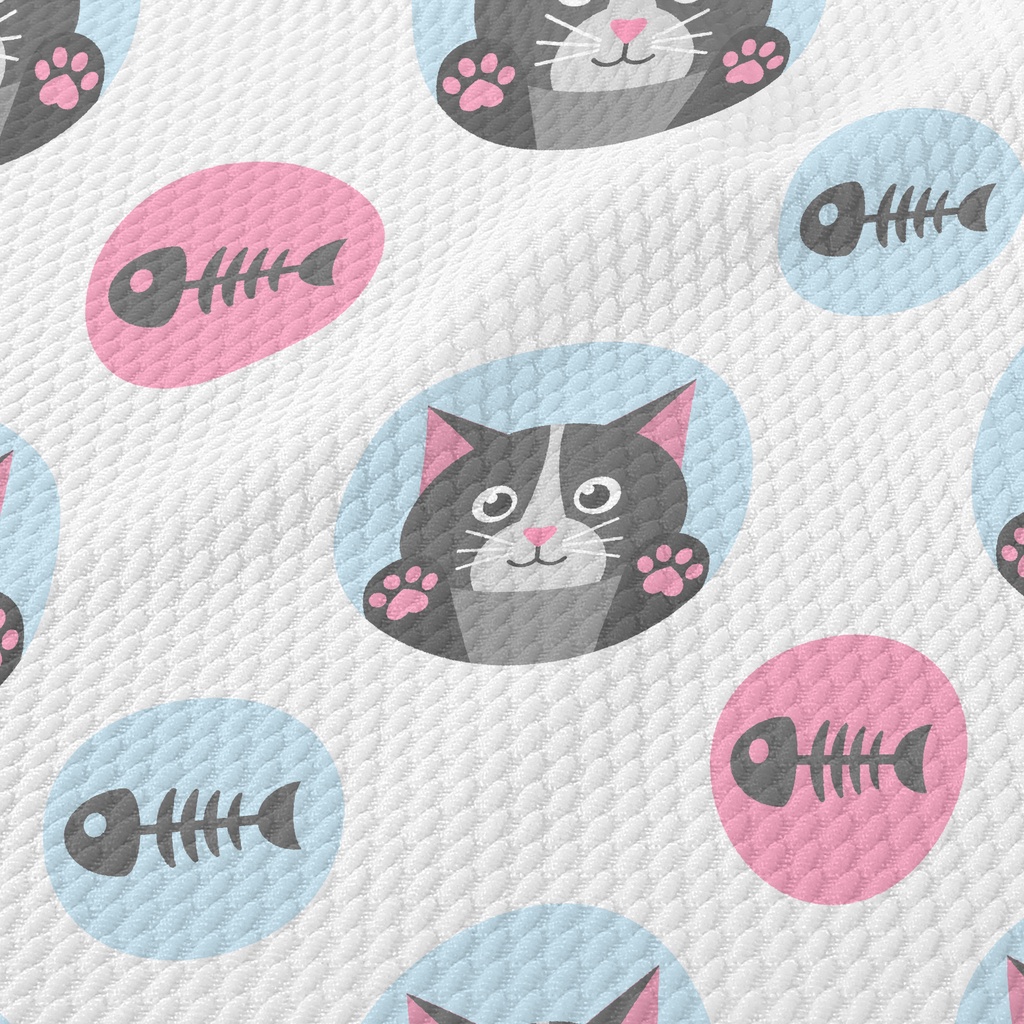 Cat And Fish Bones Birdseye Piqué