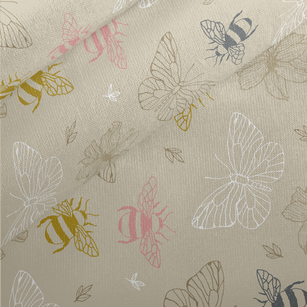 Bees And Butterflies Jersey Backed Fleece