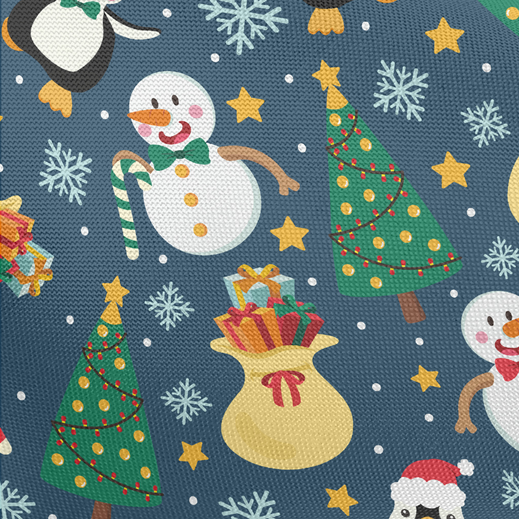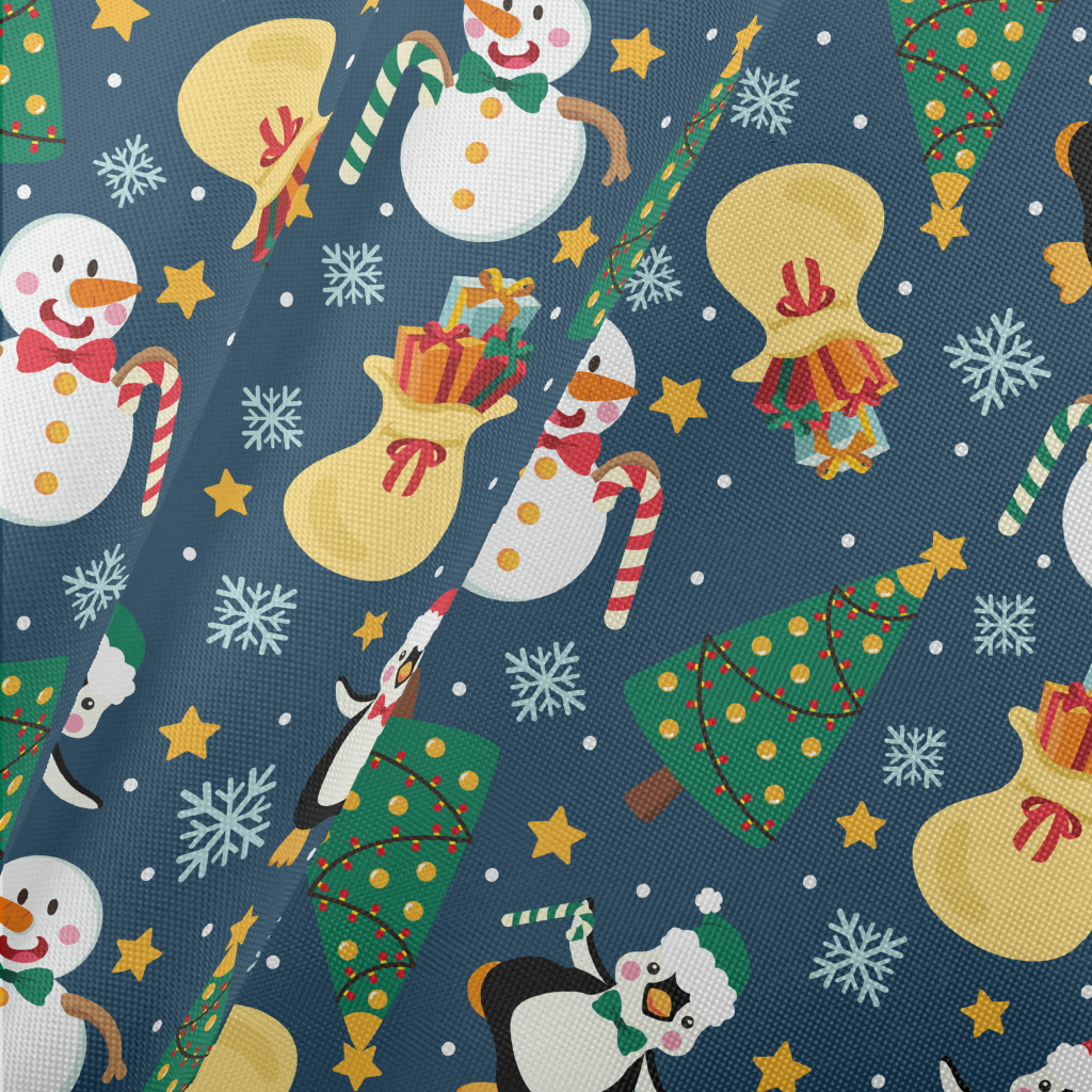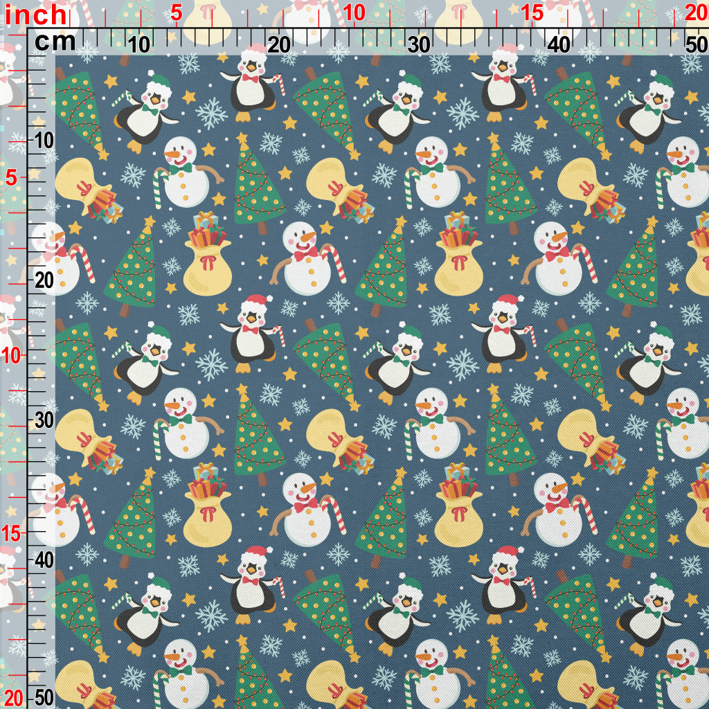 Christmas Snowman And Penguin Pongee