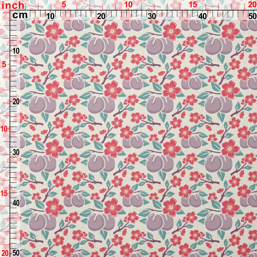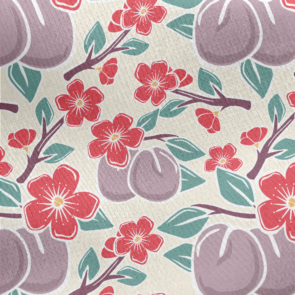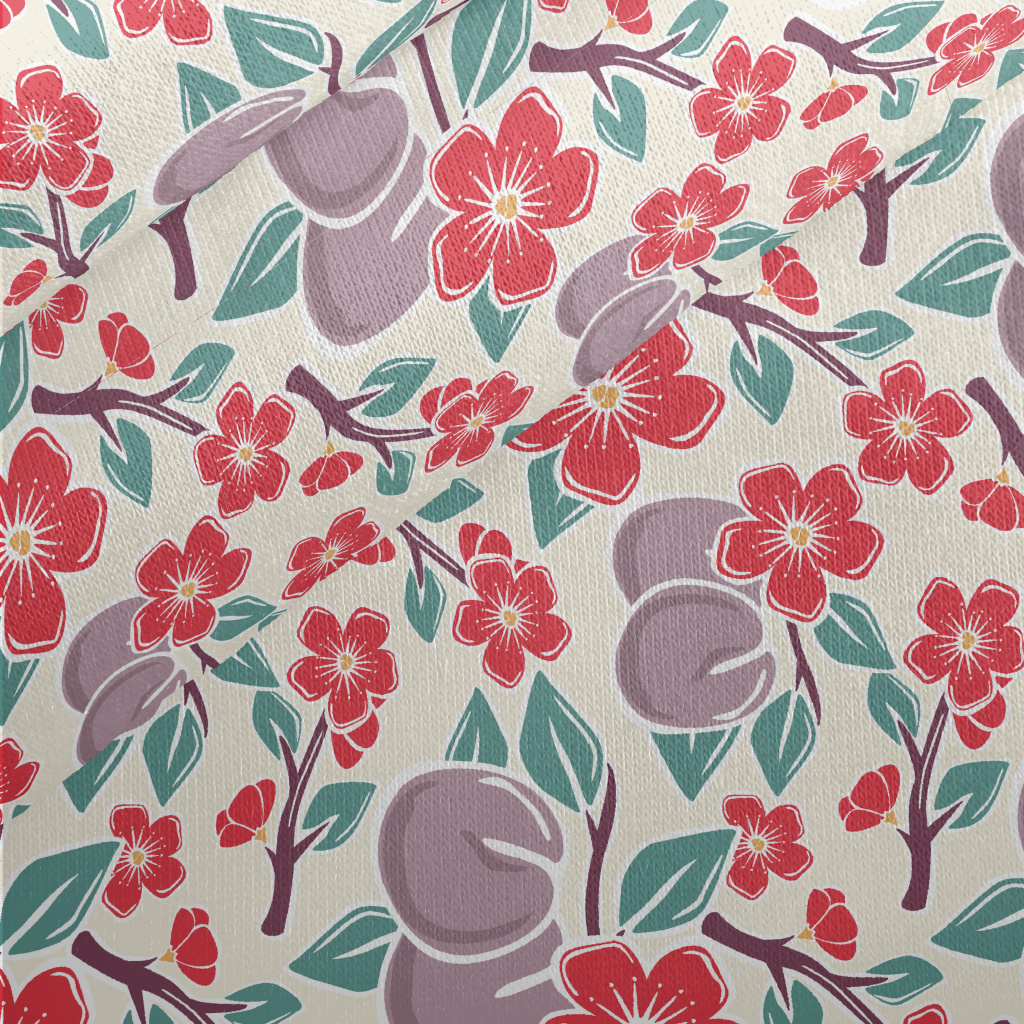 Plums And Plum Blossoms Jersey Backed Fleece