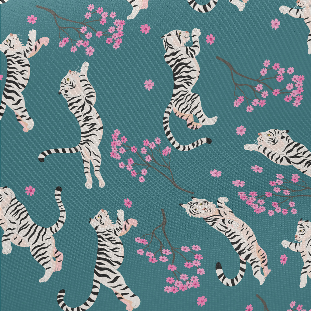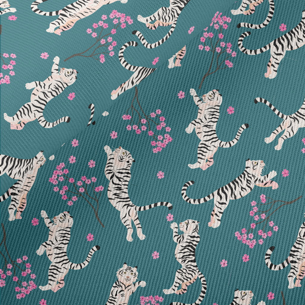 White Tiger Teases Flowers Midweight Cotton Poplin