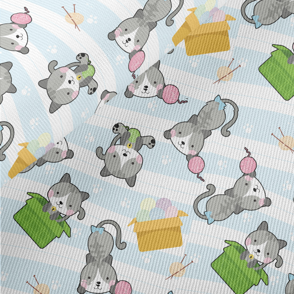Playful Rolling Cat Midweight Cotton Poplin
