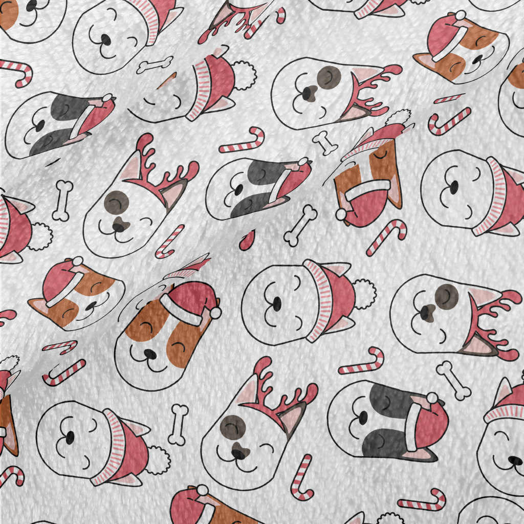 Smiling Dog In Santa Hat Minky