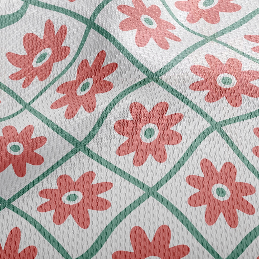 Flowers In Grid Athletic Mesh Flat Back